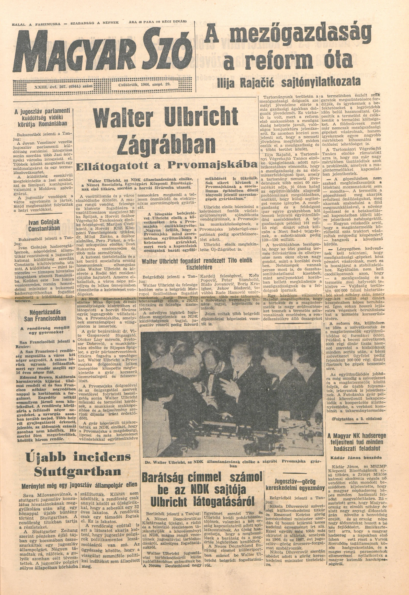 Magyar Szó, 23. évf. 1966. szeptember 29. 267. sz.