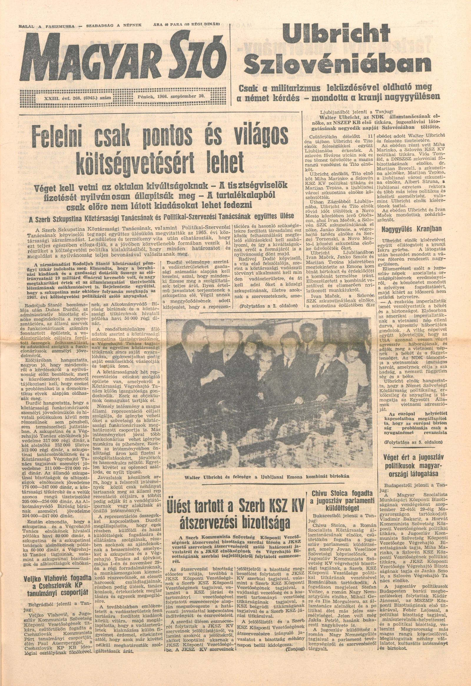 Magyar Szó, 23. évf. 1966. szeptember 30. 268. sz.