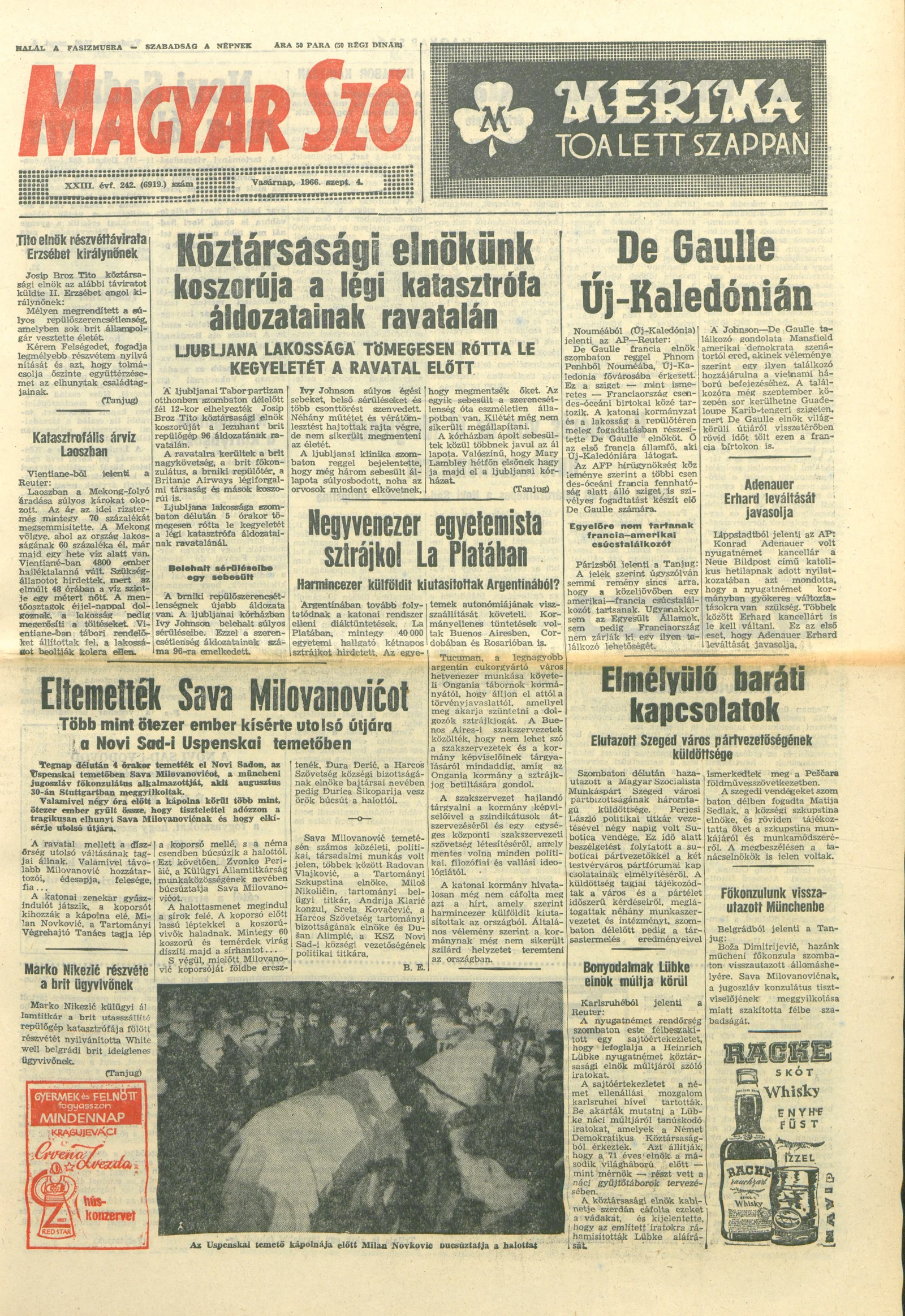 Magyar Szó, 23. évf. 1966. szeptember 4. 242. sz.