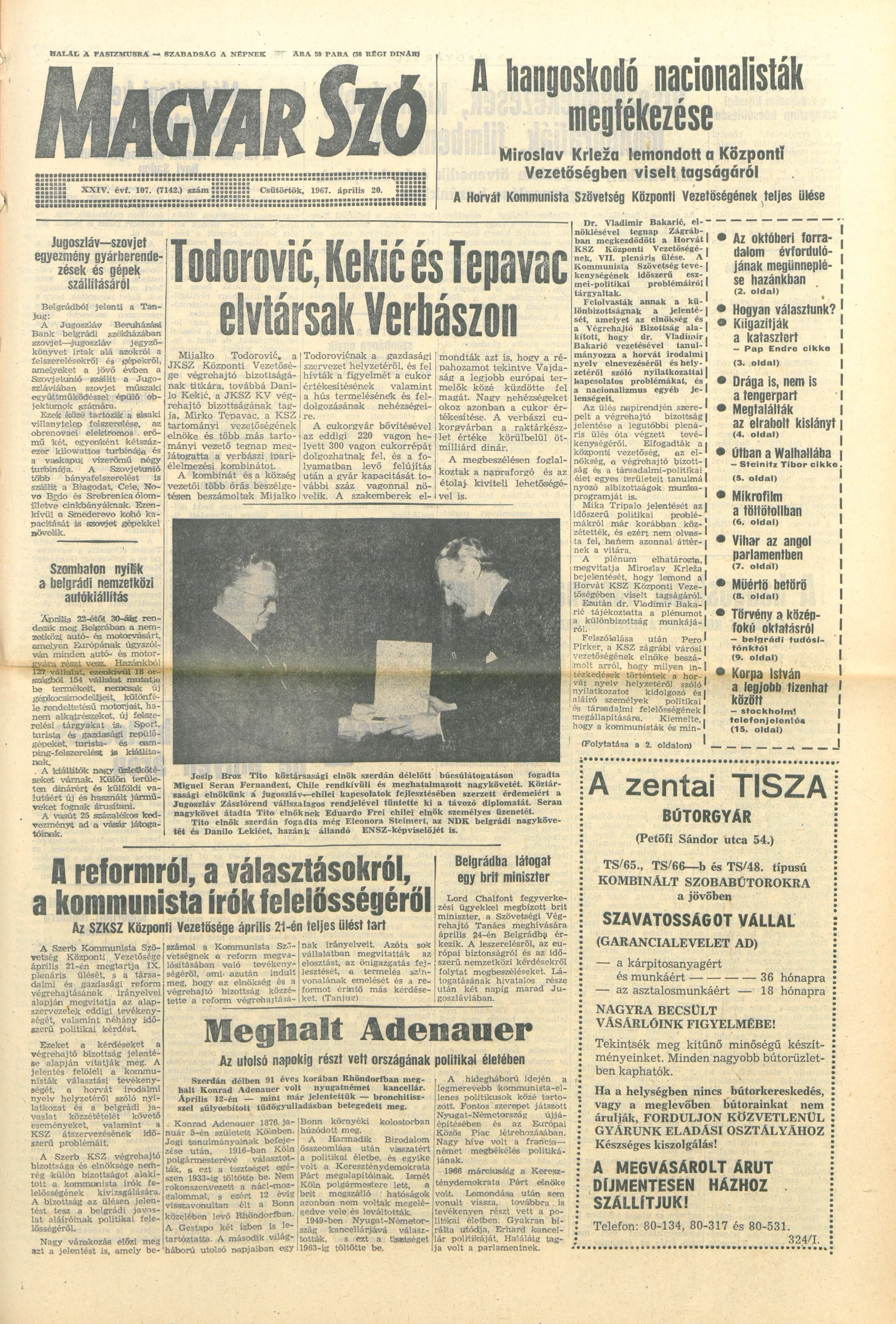 Magyar Szó, 24. évf. 1967. április 20. 107. sz. 1–16. oldal