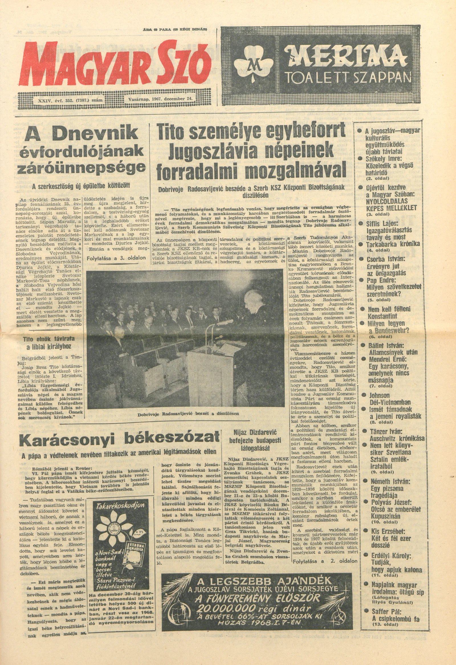 Magyar Szó, 24. évf. 1967. december 24. 352. sz. 1–24. oldal