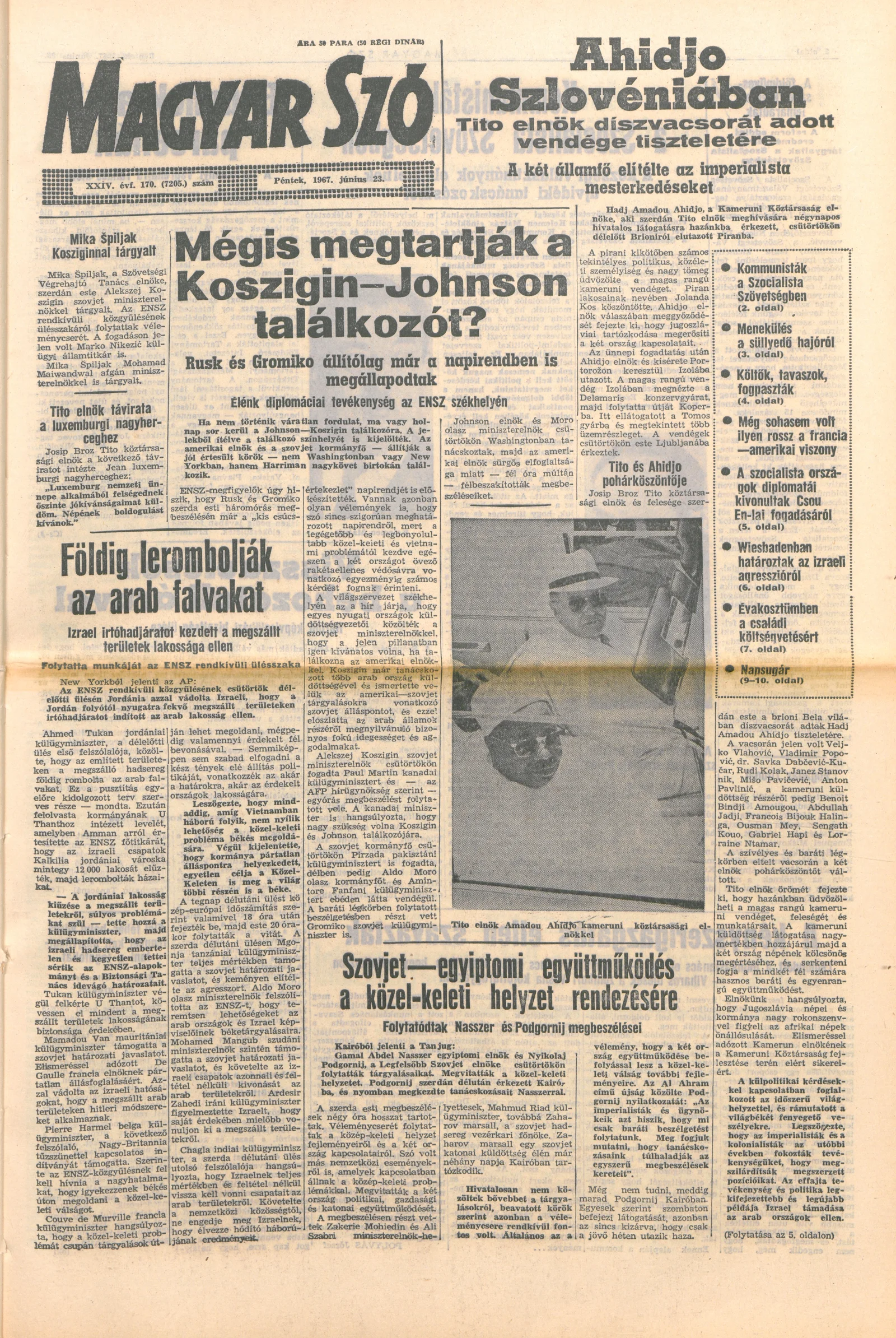 Magyar Szó, 24. évf. 1967. június 23. 170. sz. 1–14. oldal