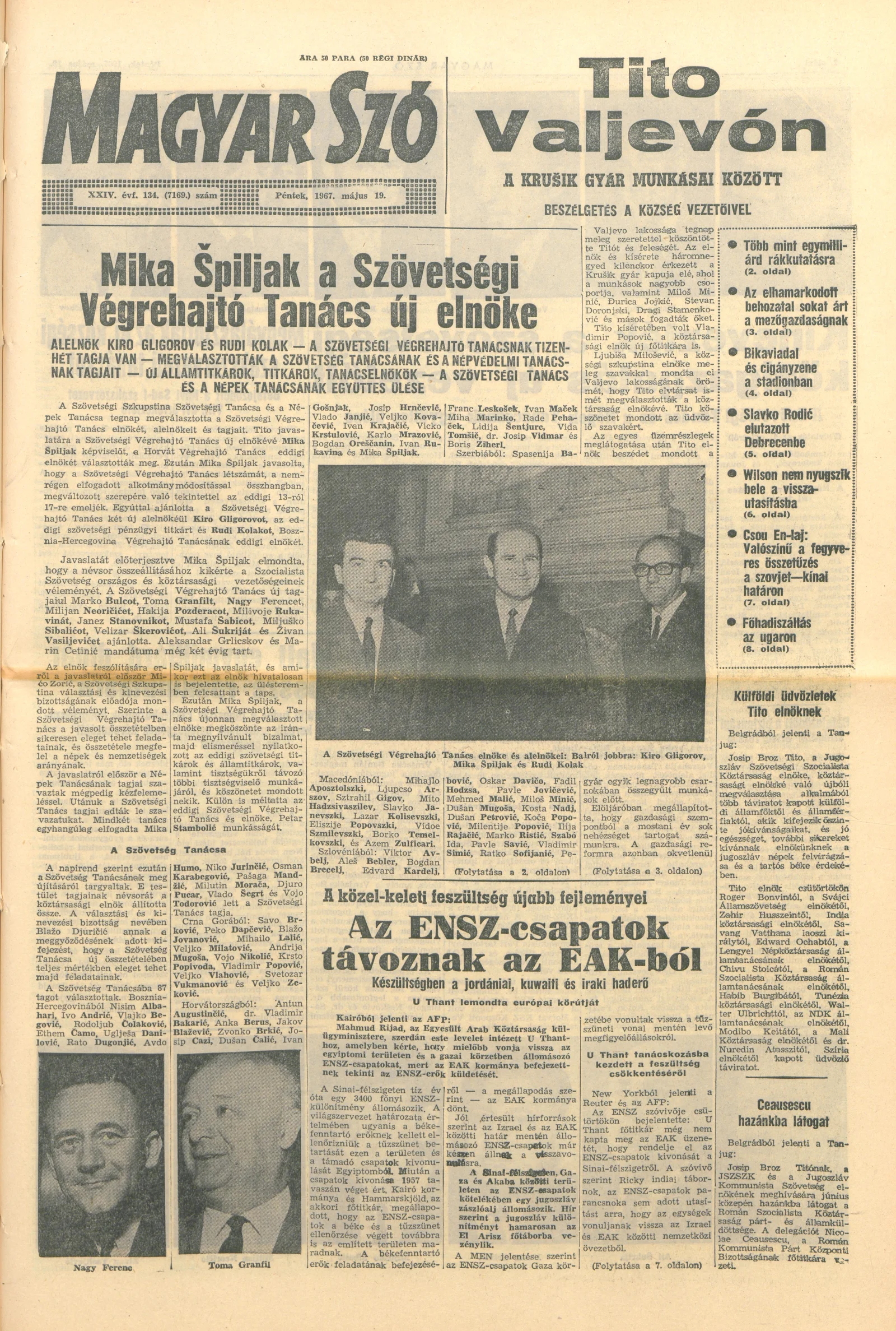 Magyar Szó, 24. évf. 1967. május 19. 134. sz. 1–16. oldal