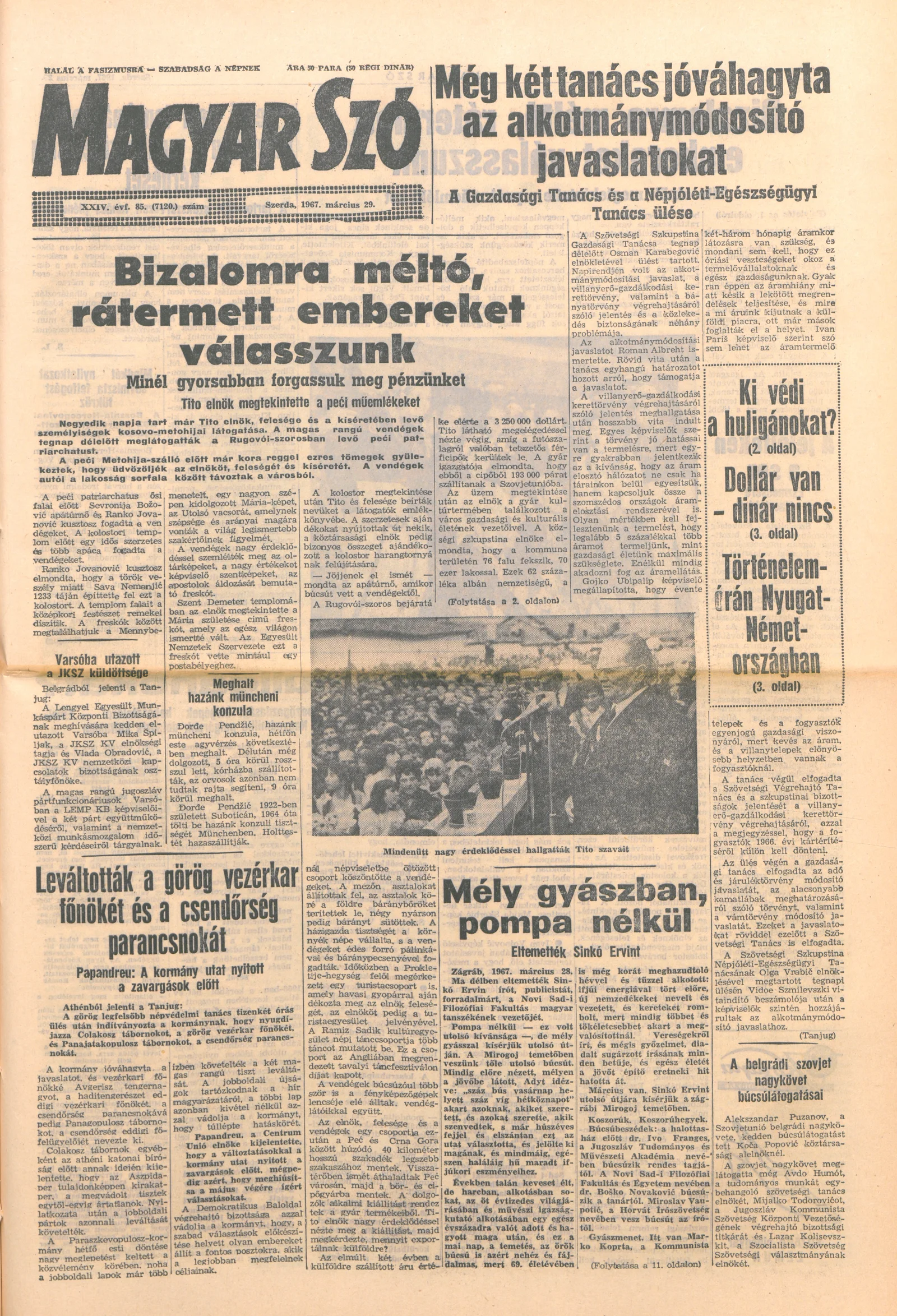 Magyar Szó, 24. évf. 1967. március 29. 85. sz. 1–16. oldal