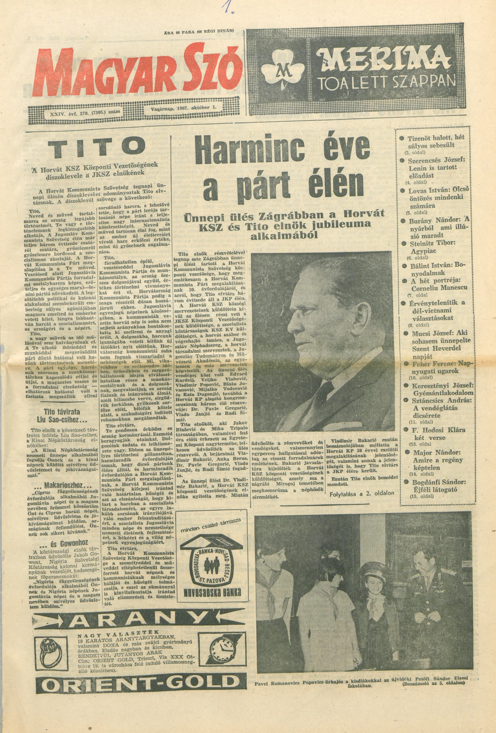 Magyar Szó, 24. évf. 1967. október 1. 270. sz. 1–24. oldal