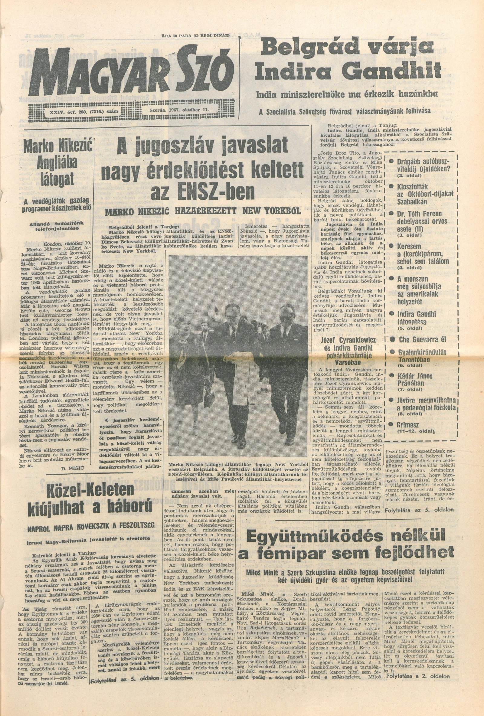 Magyar Szó, 24. évf. 1967. október 11. 280. sz. 1–16. oldal