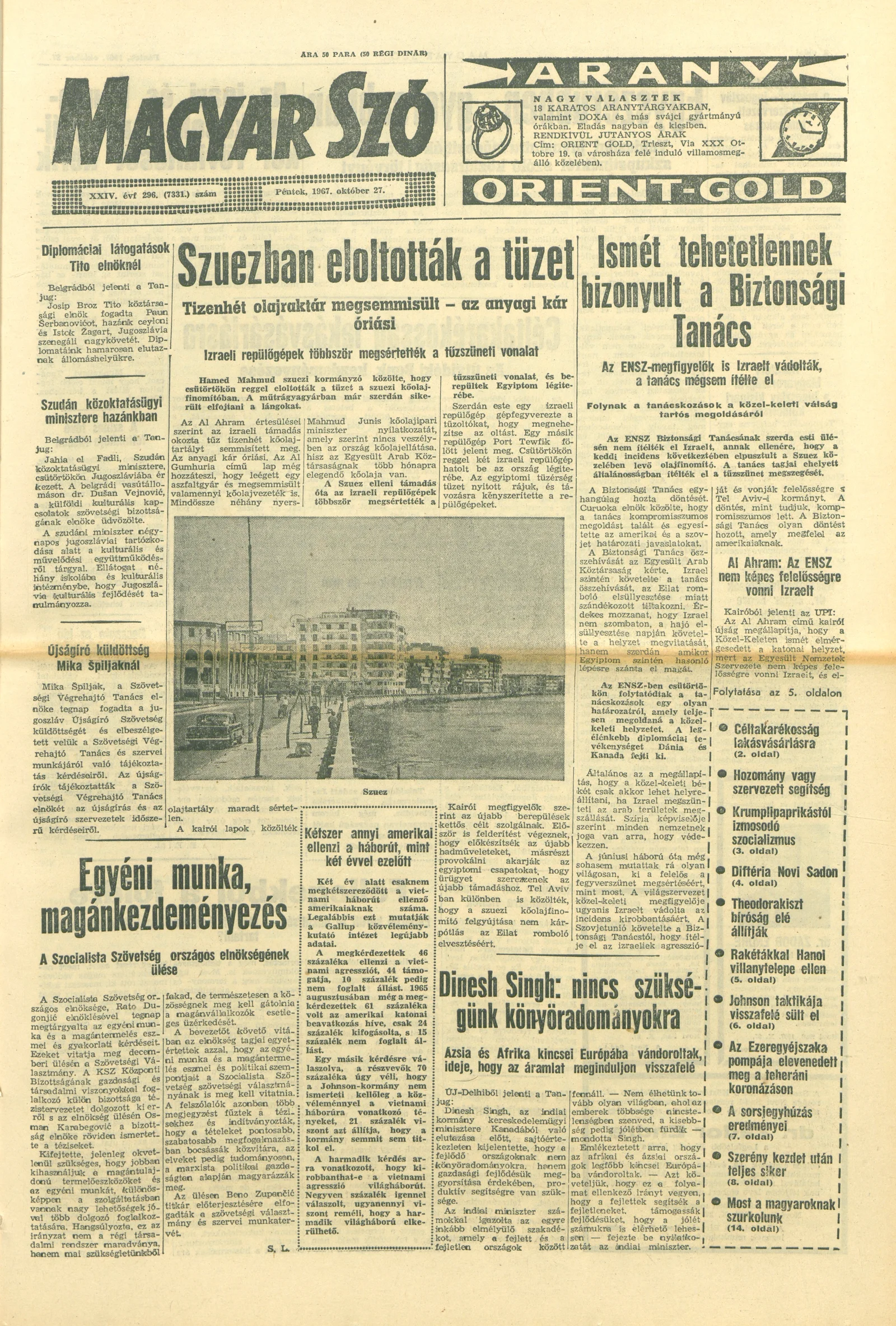 Magyar Szó, 24. évf. 1967. október 27. 296. sz. 1–16. oldal