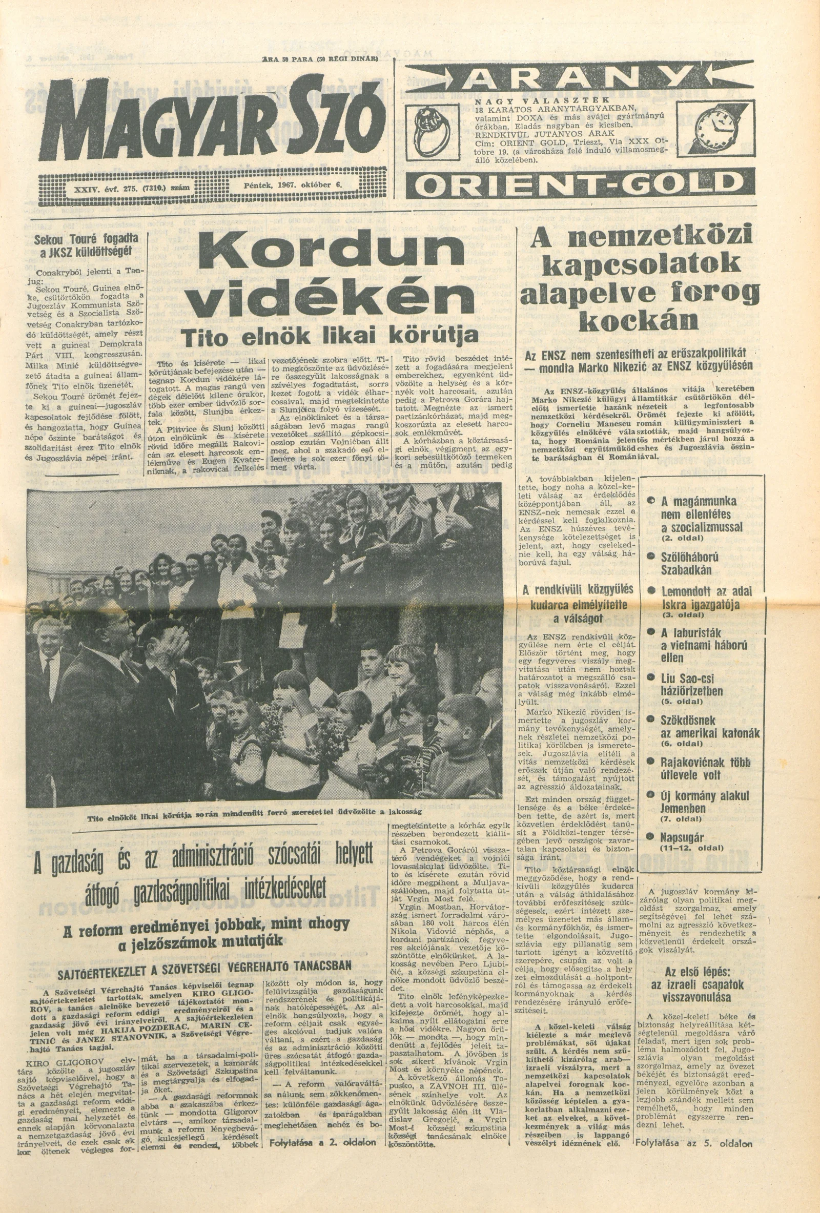 Magyar Szó, 24. évf. 1967. október 6. 275. sz. 1–16. oldal