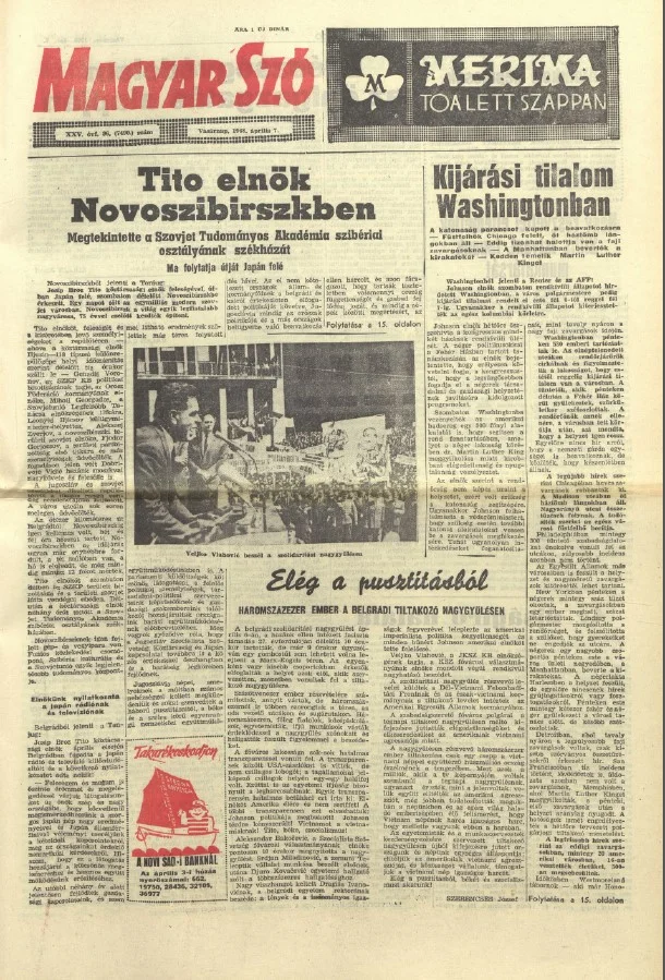 Magyar Szó, 25. évf. 1968. április 7. 96. sz. 1–36. oldal