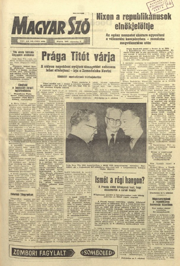 Magyar Szó, 25. évf. 1968. augusztus 9. 218. sz. 1–10. oldal