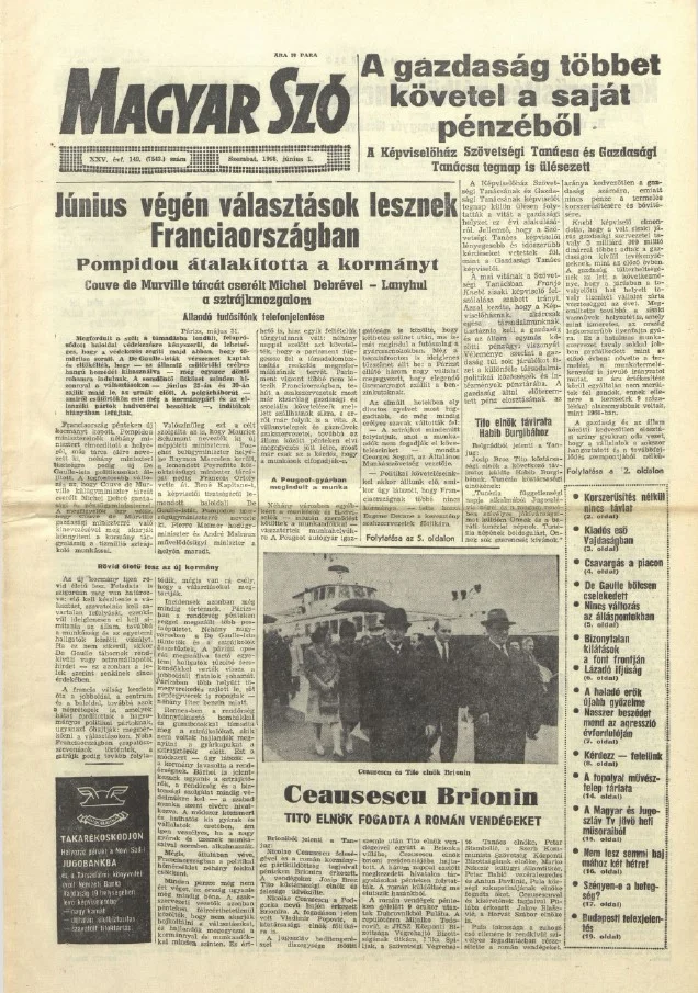 Magyar Szó, 25. évf. 1968. június 1. 149. sz. 1–20. oldal