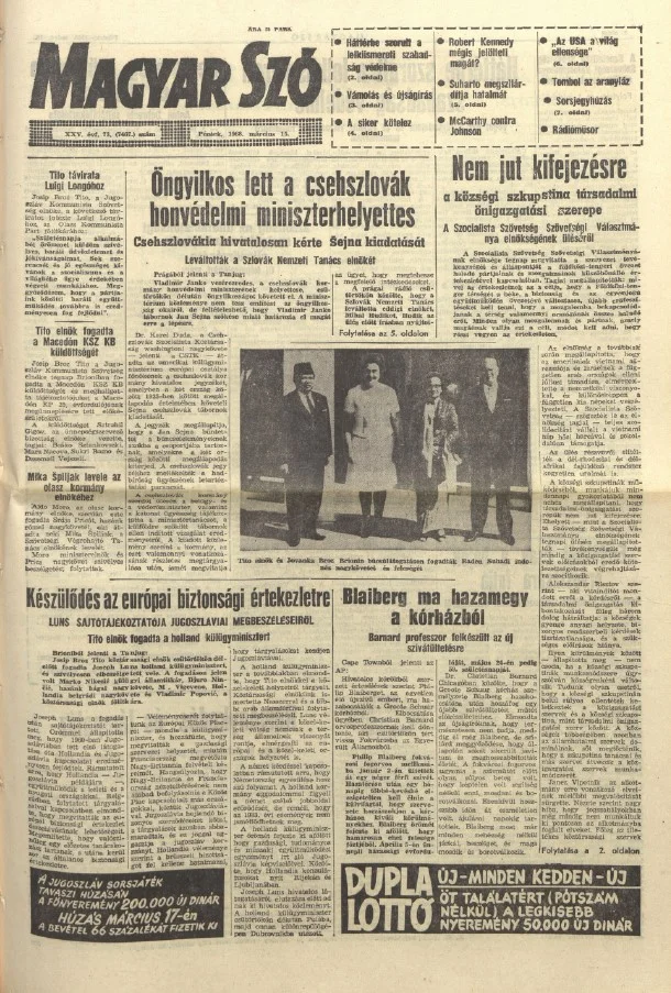 Magyar Szó, 25. évf. 1968. március 15. 73. sz. 1–12. oldal