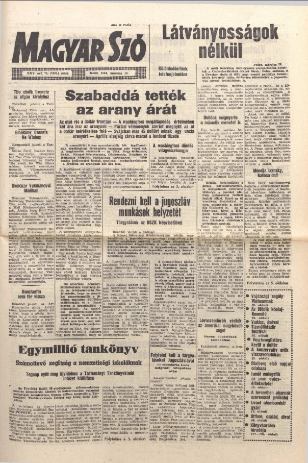 Magyar Szó, 25. évf. 1968. március 19. 77. sz. 1–16. oldal