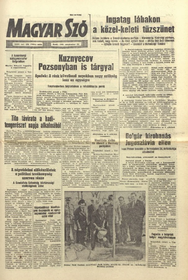 Magyar Szó, 25. évf. 1968. szeptember 10. 250. sz. 1–12. oldal