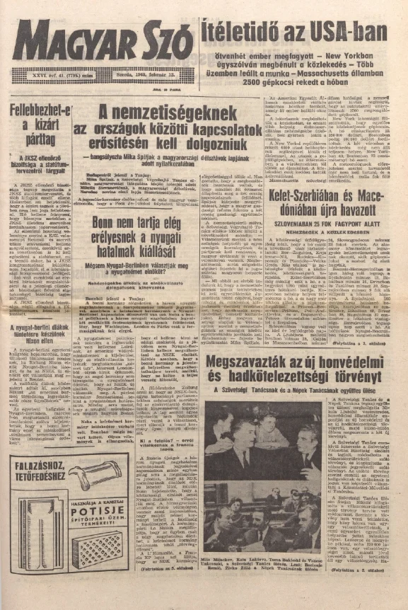 Magyar Szó, 26. évf. 1969. február 12. 41. sz. 1–28. oldal
