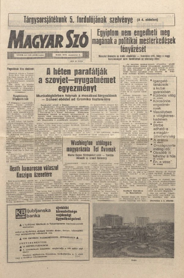 Magyar Szó, 27. évf. 1970. augusztus 4. 212. sz. 1–14. oldal