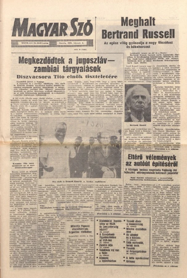 Magyar Szó, 27. évf. 1970. február 4. 33. sz. 1–16. oldal
