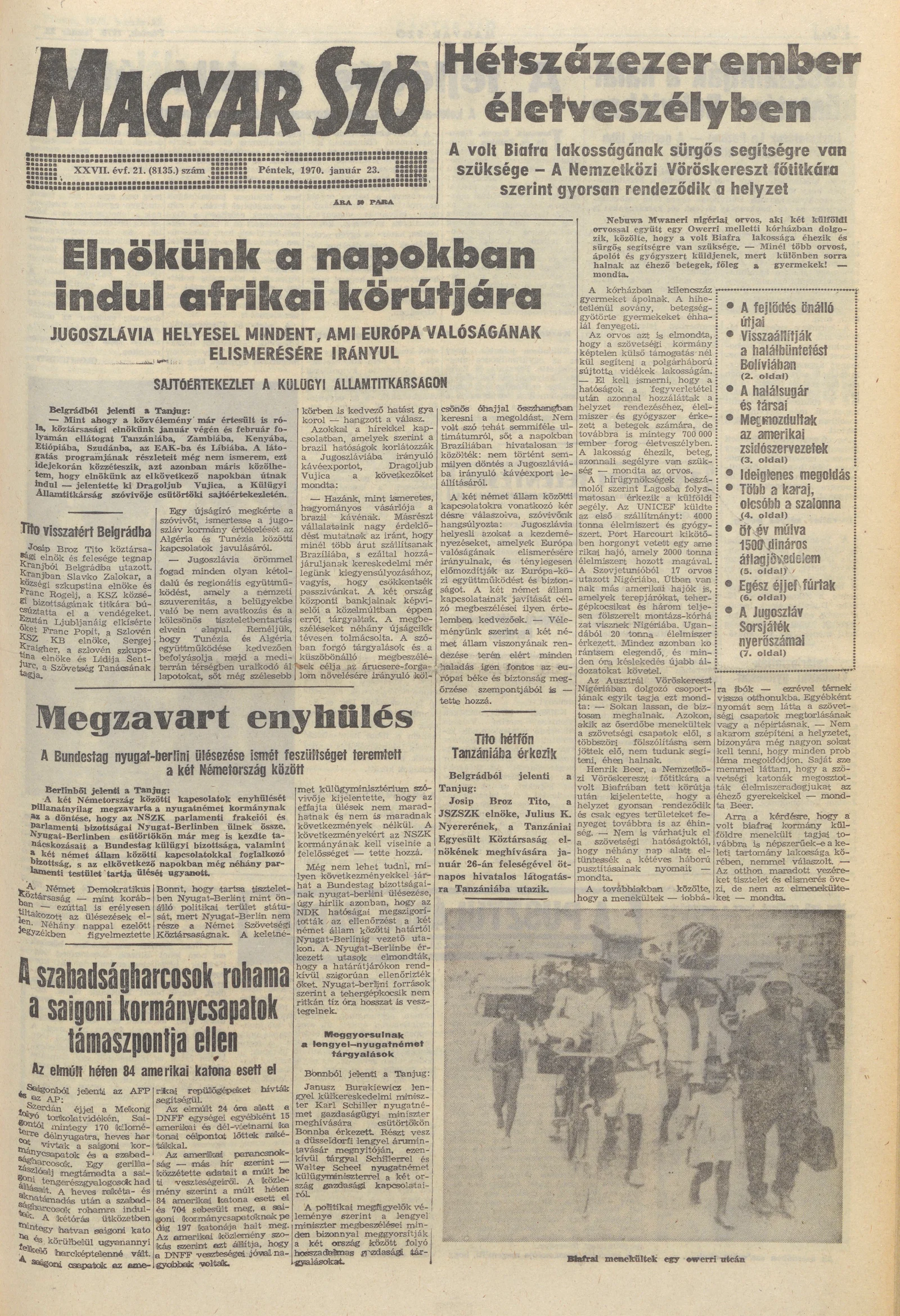 Magyar Szó, 27. évf. 1970. január 23. 21. sz. 1–12. oldal