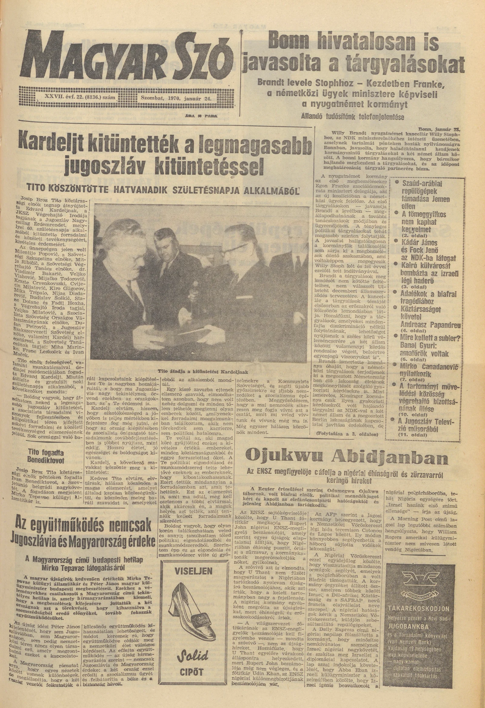 Magyar Szó, 27. évf. 1970. január 24. 22. sz. 1–20. oldal