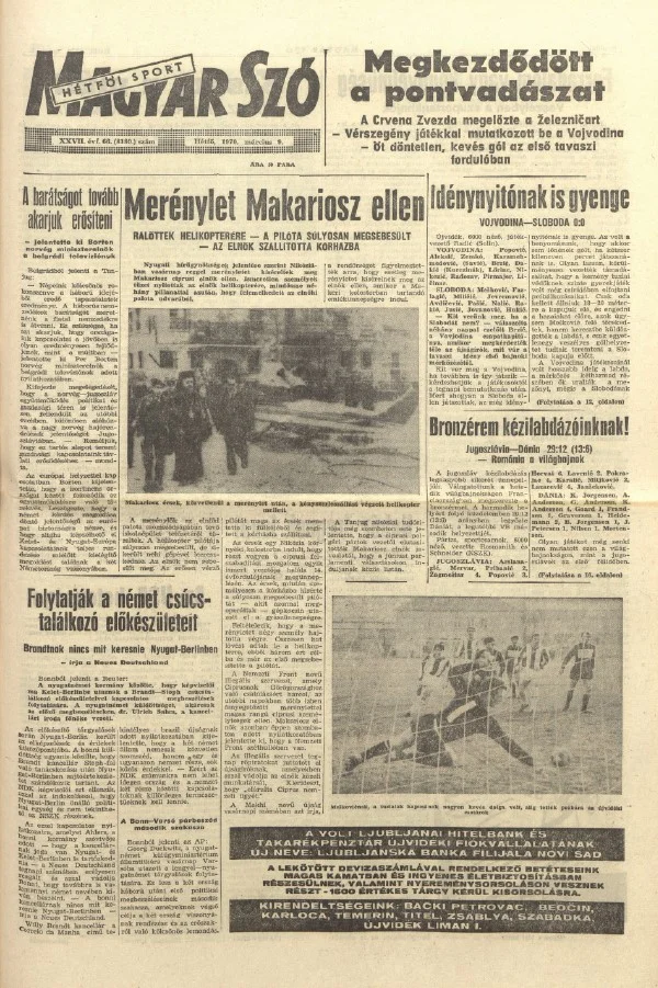 Magyar Szó, 27. évf. 1970. március 9. 66. sz. 1–16. oldal