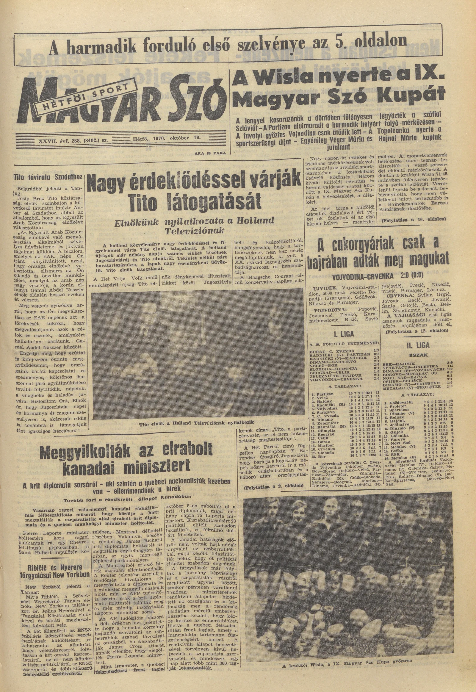 Magyar Szó, 27. évf. 1970. október 19. 288. sz. 1–16. oldal