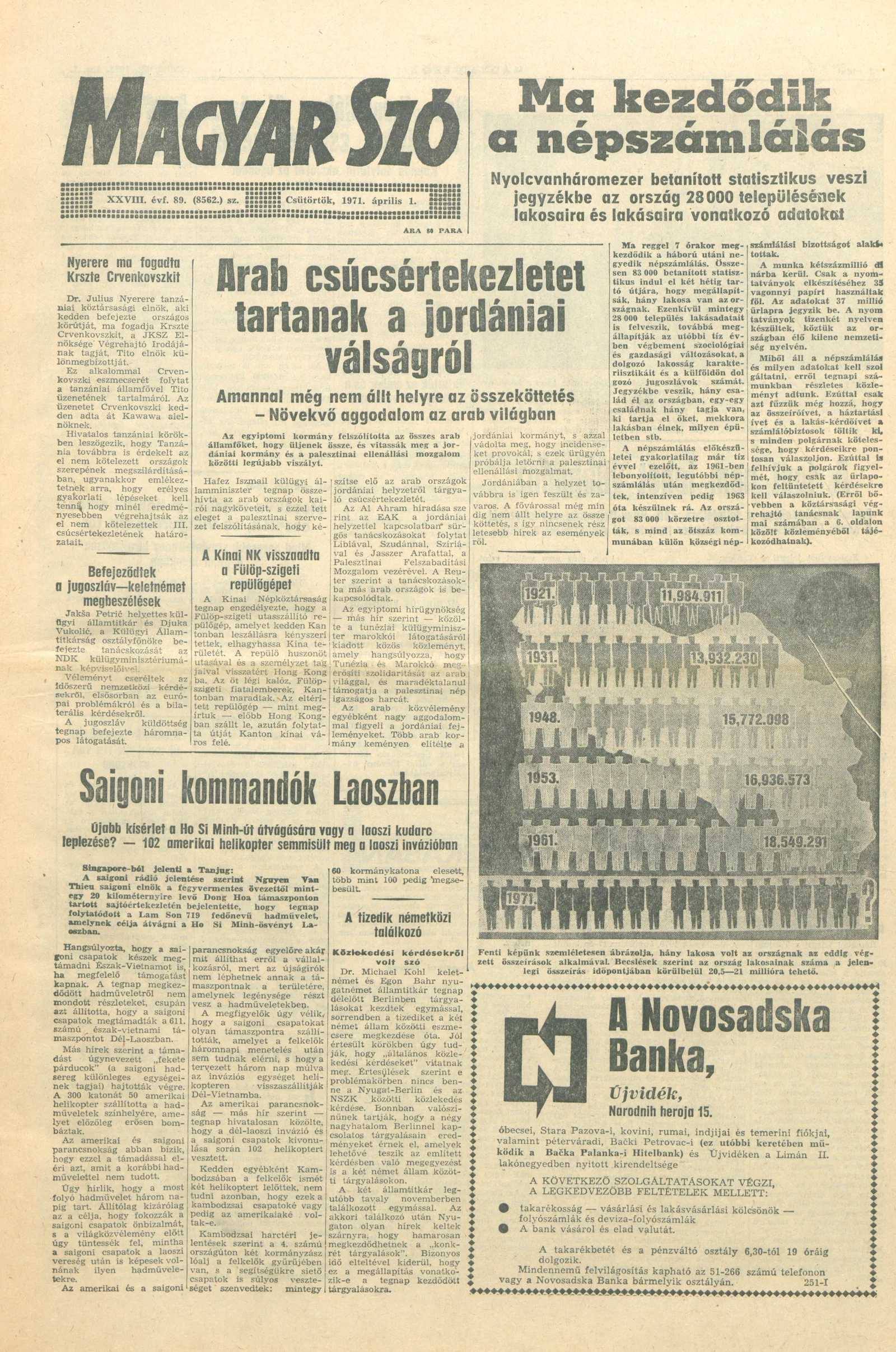 Magyar Szó, 28. évf. 1971. április 1. 89. sz. 1–28. oldal