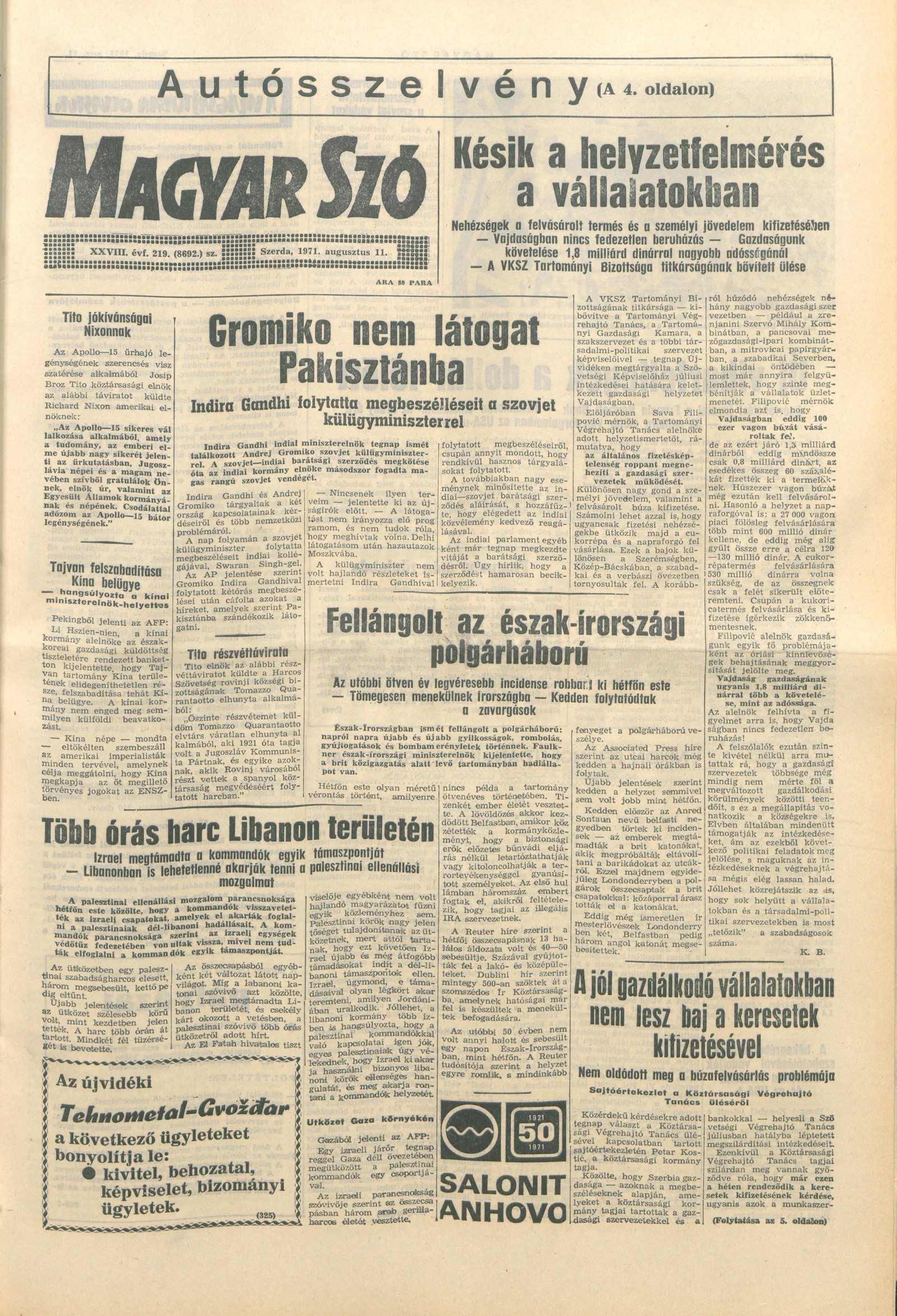 Magyar Szó, 28. évf. 1971. augusztus 11. 219. sz. 1–14. oldal