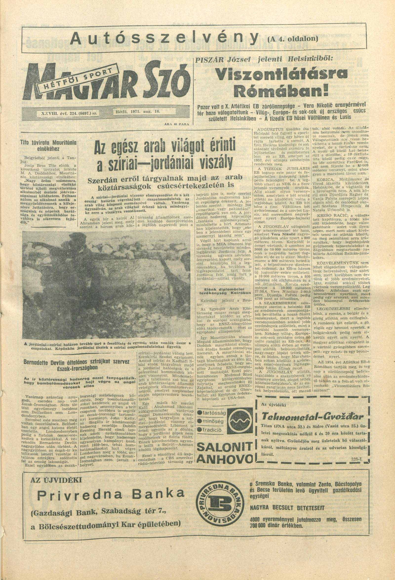 Magyar Szó, 28. évf. 1971. augusztus 16. 224. sz. 1–14. oldal
