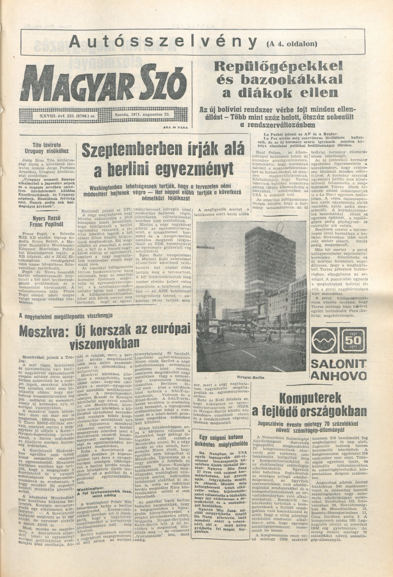 Magyar Szó, 28. évf. 1971. augusztus 25. 233. sz. 1–14. oldal
