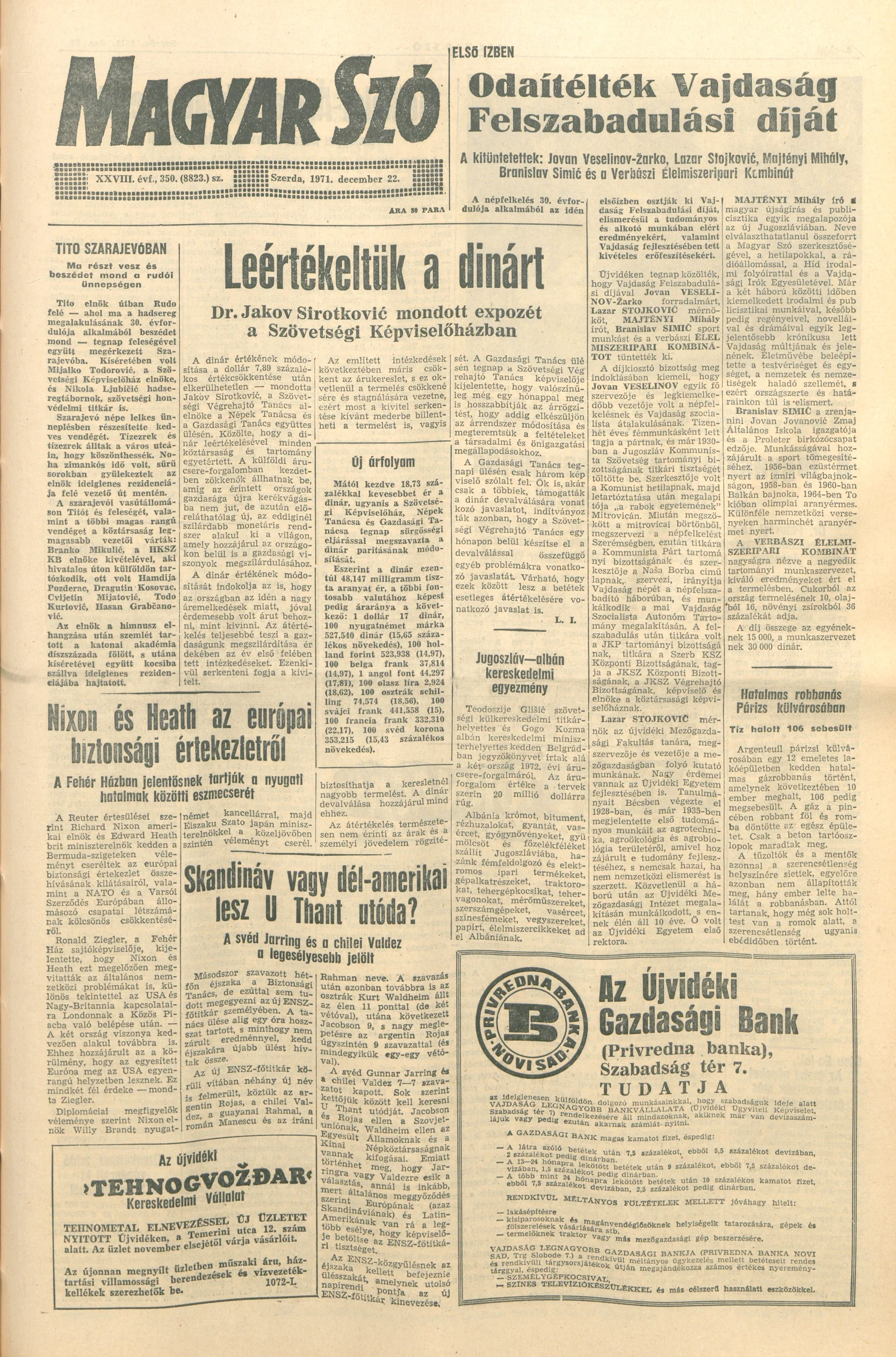 Magyar Szó, 28. évf. 1971. december 22. 350. sz. 1–20. oldal