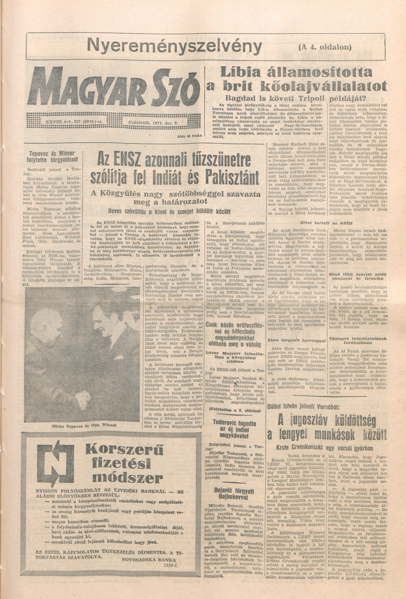Magyar Szó, 28. évf. 1971. december 9. 337. sz. 1–12. oldal