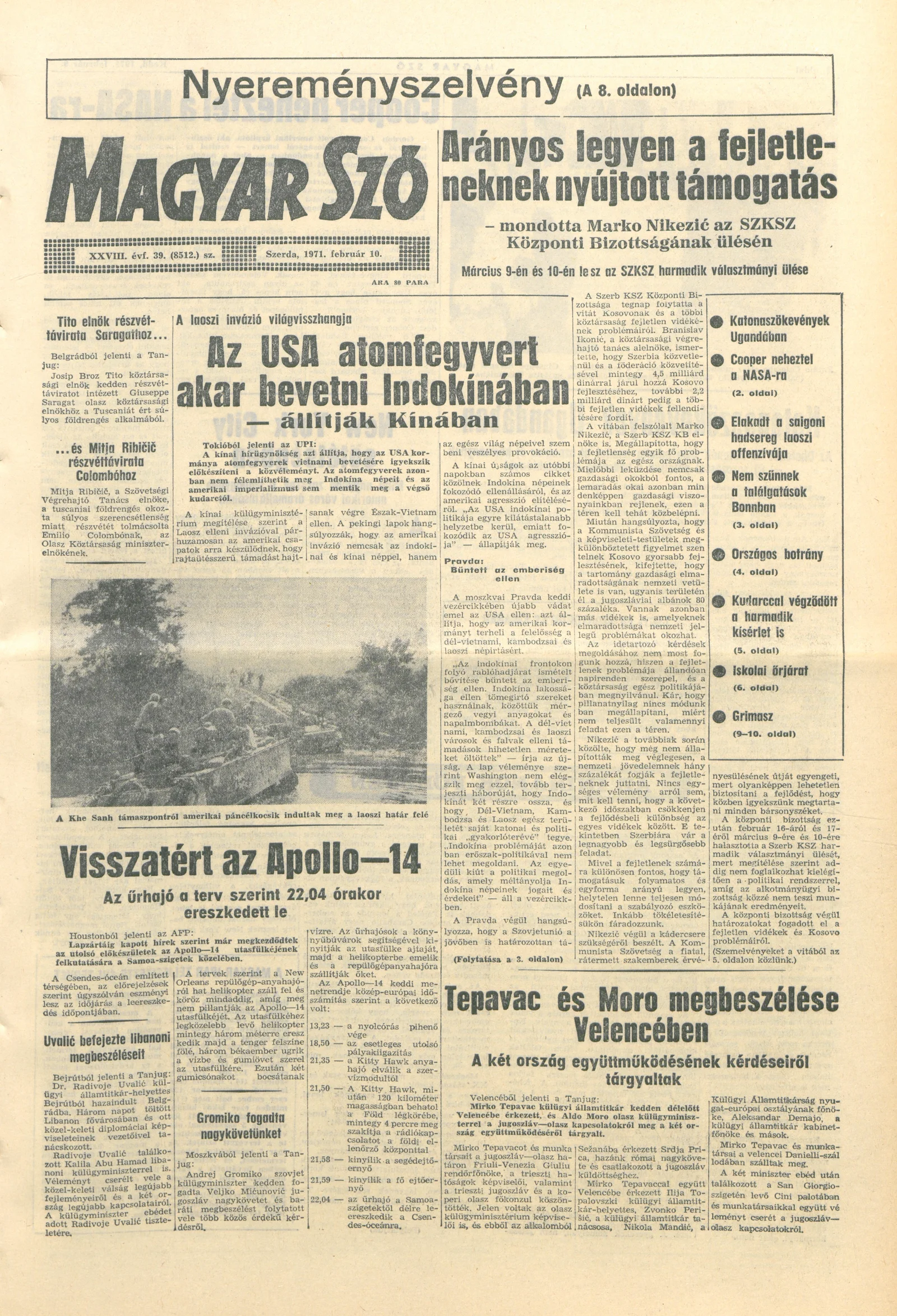 Magyar Szó, 28. évf. 1971. február 10. 39. sz. 1–14. oldal