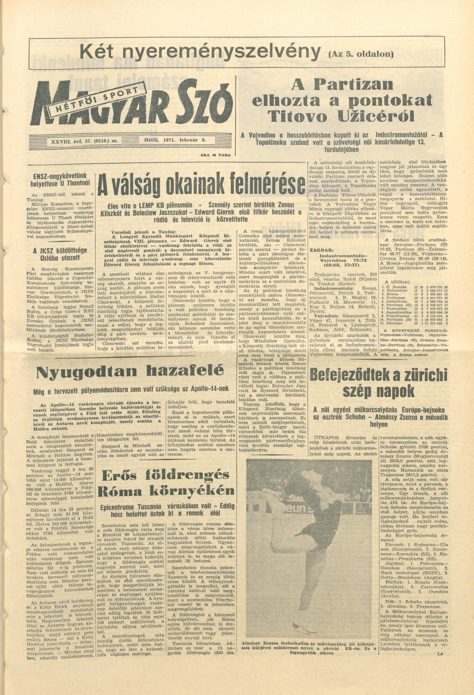 Magyar Szó, 28. évf. 1971. február 8. 37. sz. 1–16. oldal