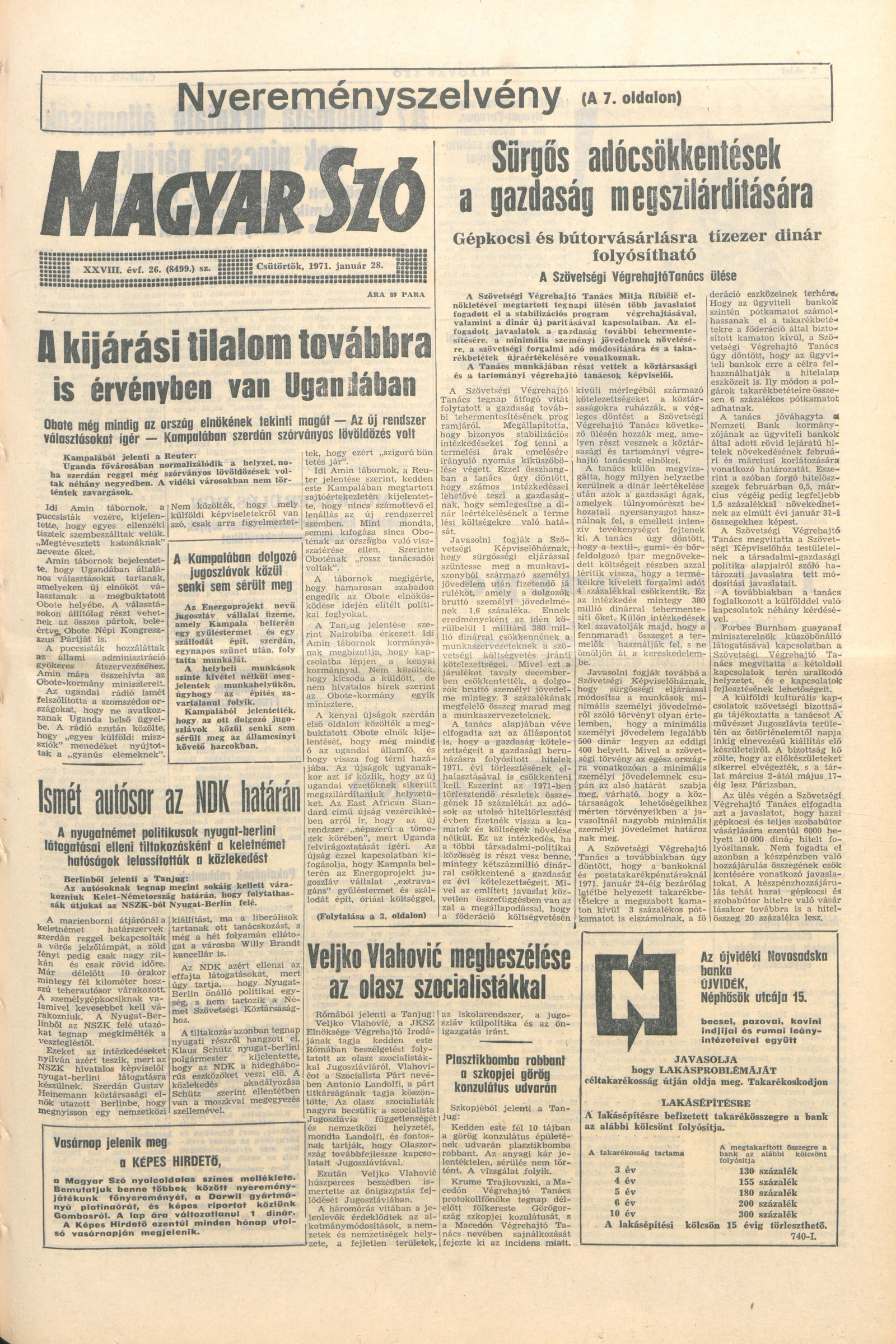 Magyar Szó, 28. évf. 1971. január 28. 26. sz. 1–16. oldal