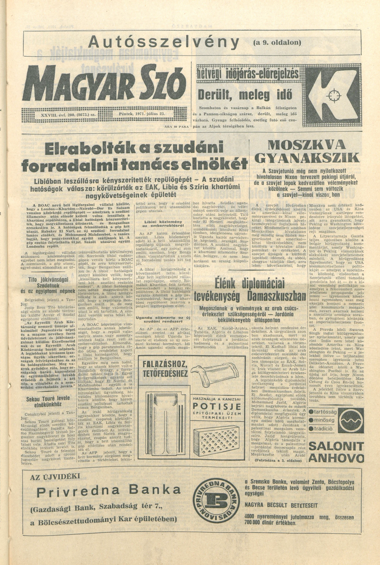 Magyar Szó, 28. évf. 1971. július 23. 200. sz. 1–12. oldal