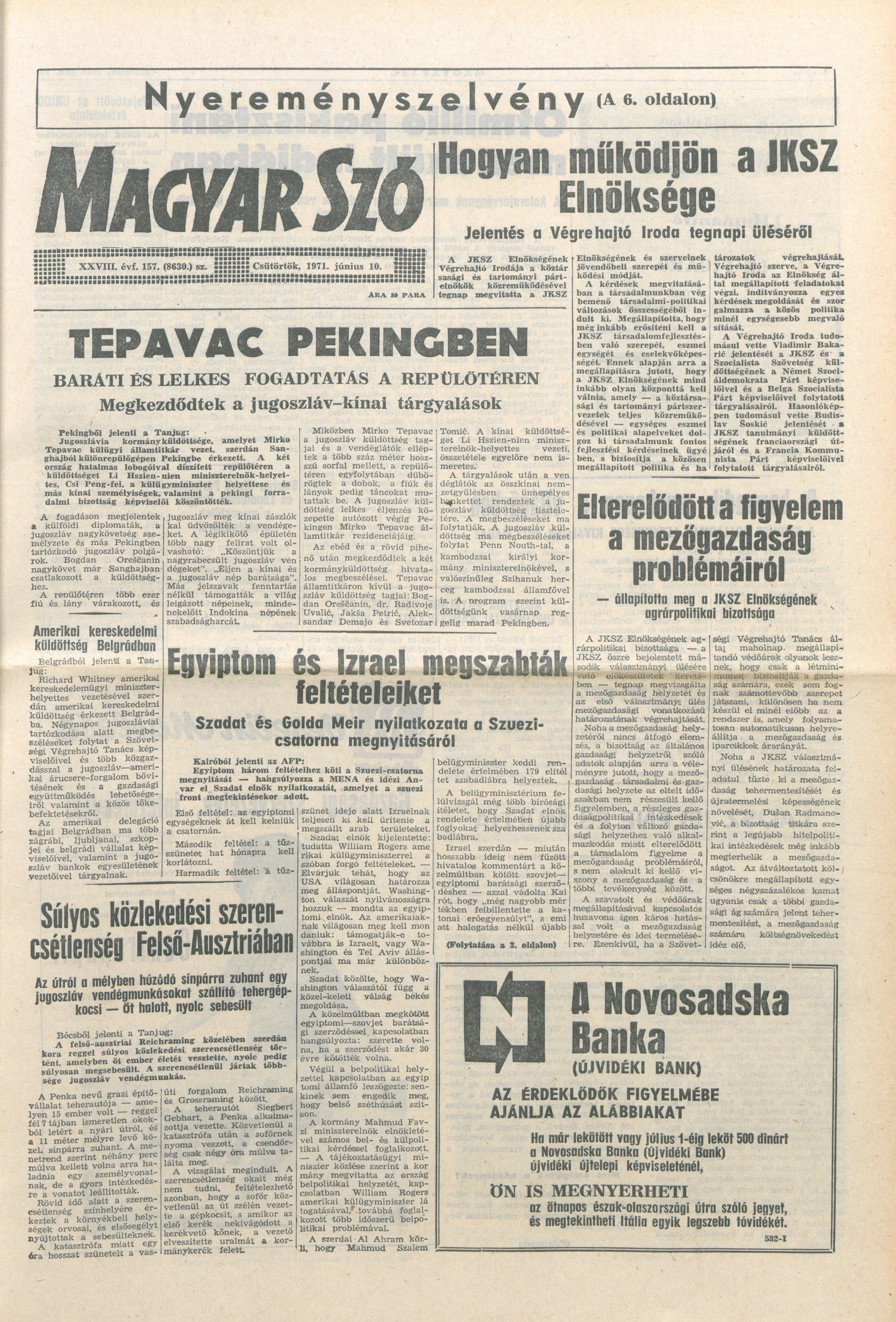 Magyar Szó, 28. évf. 1971. június 10. 157. sz. 1–16. oldal