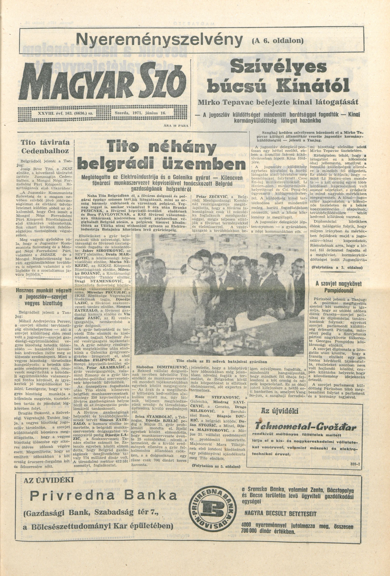 Magyar Szó, 28. évf. 1971. június 16. 163. sz. 1–14. oldal
