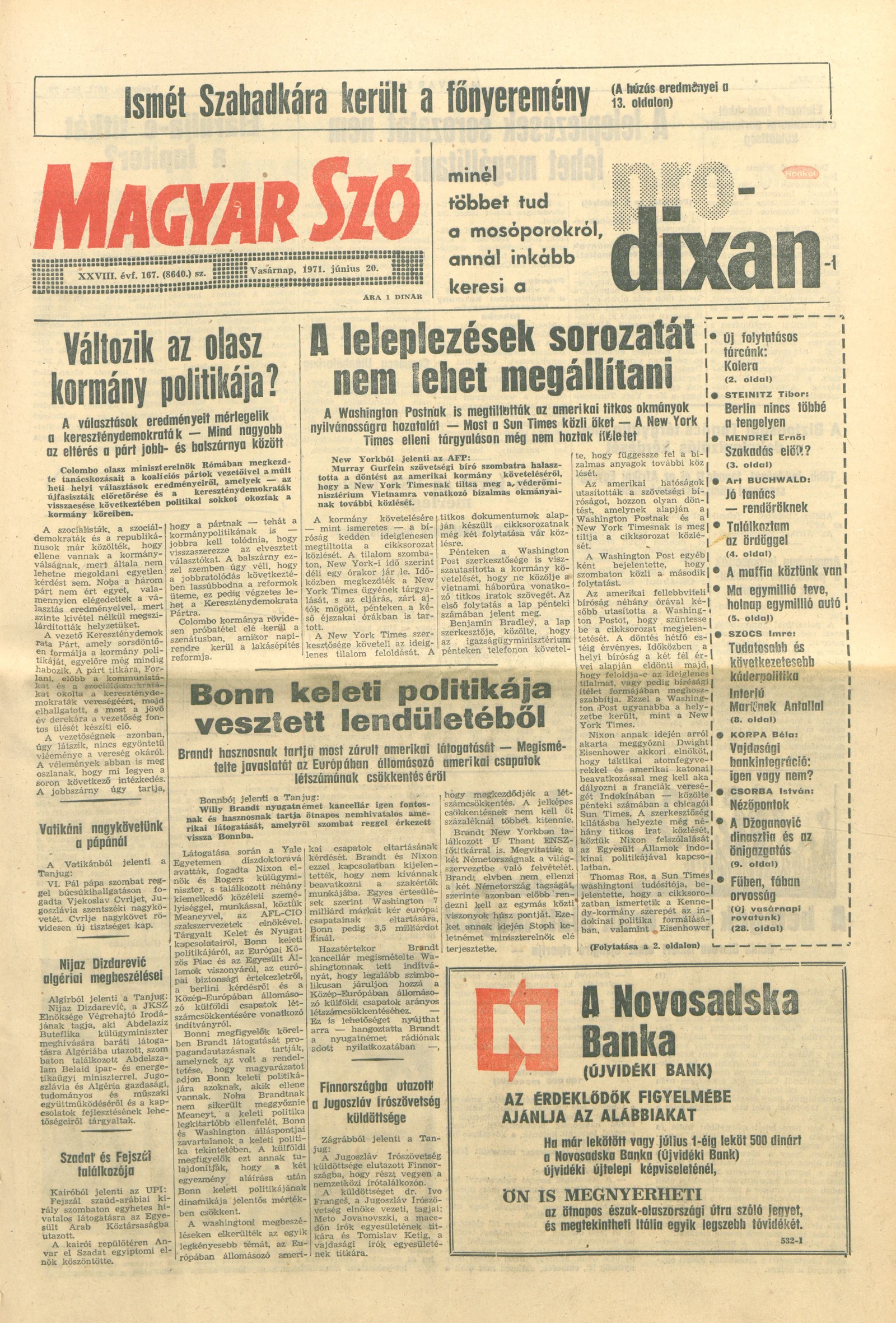 Magyar Szó, 28. évf. 1971. június 20. 167. sz. 1–32. oldal
