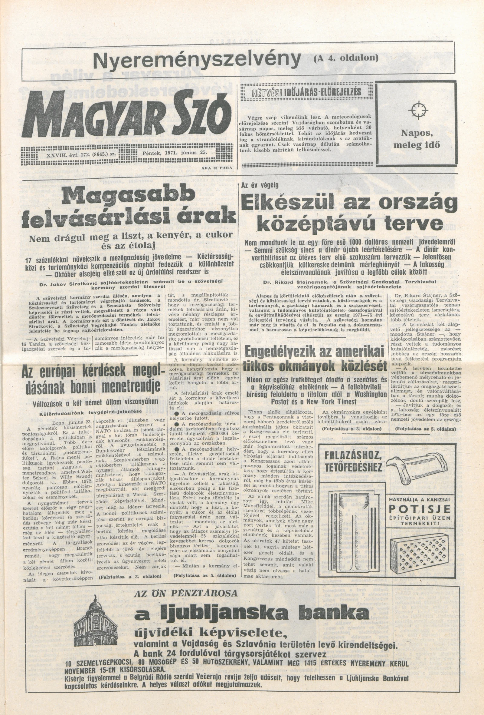 Magyar Szó, 28. évf. 1971. június 25. 172. sz. 1–12. oldal