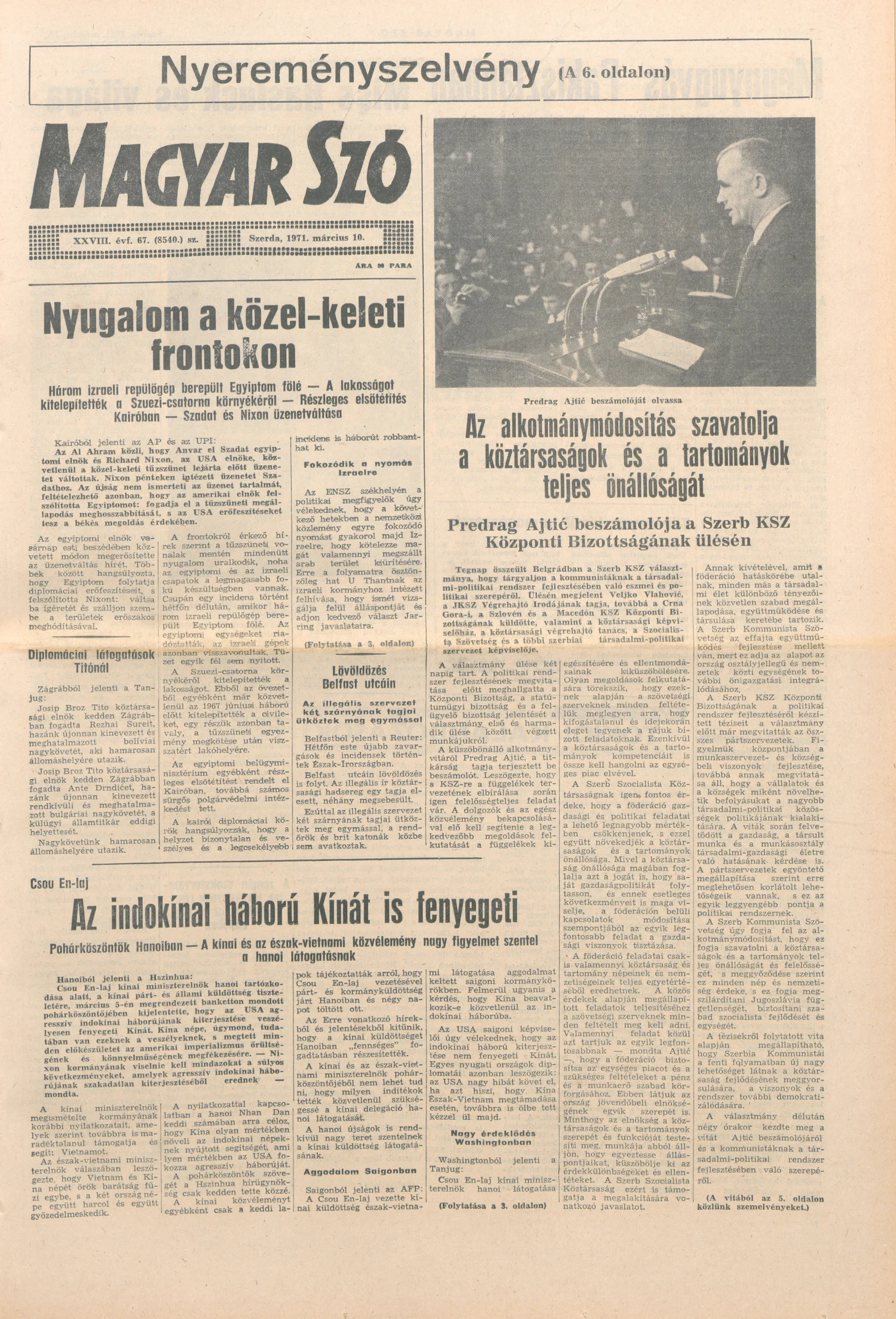 Magyar Szó, 28. évf. 1971. március 10. 67. sz. 1–16. oldal