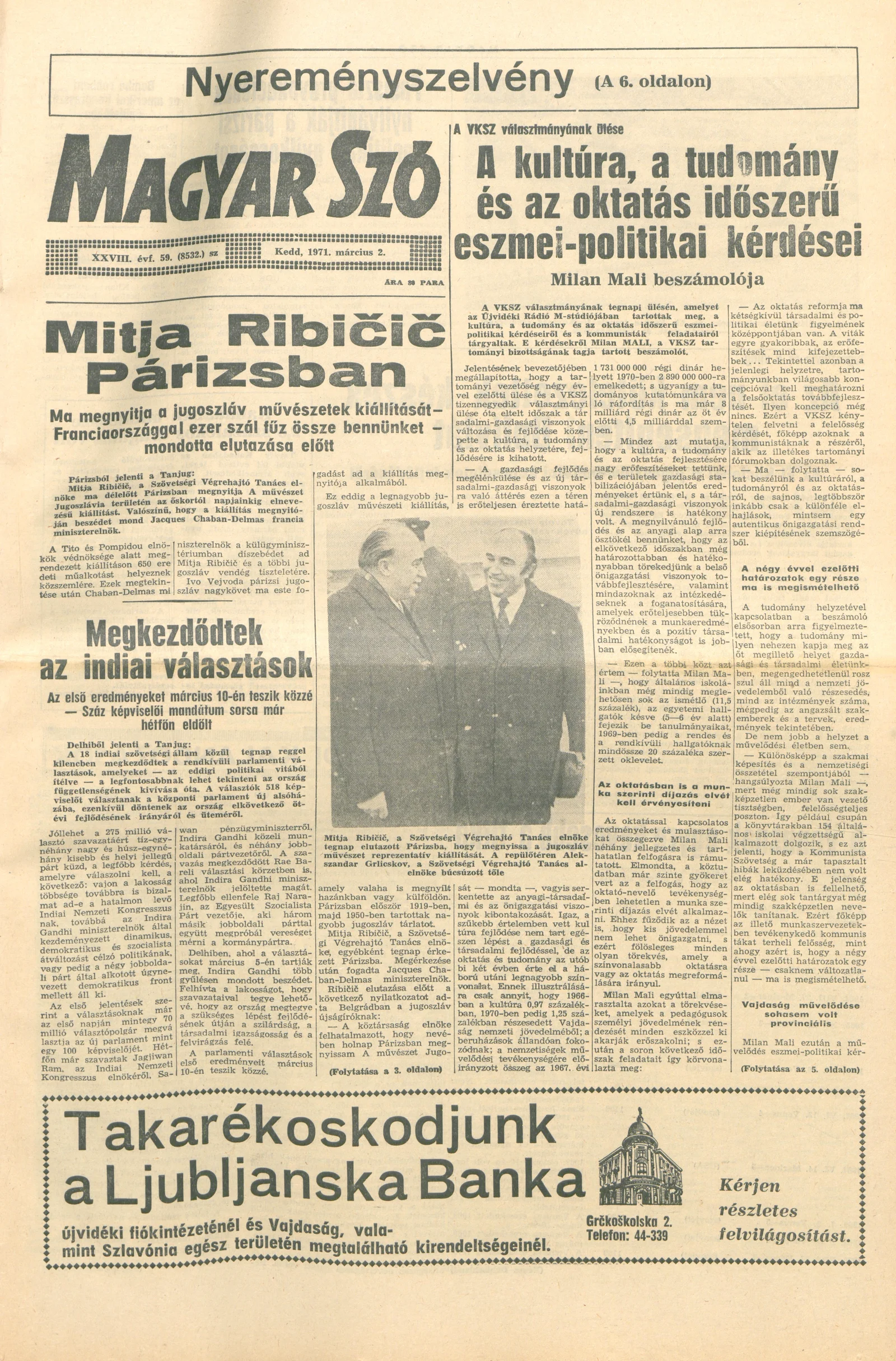 Magyar Szó, 28. évf. 1971. március 2. 59. sz. 1–16. oldal