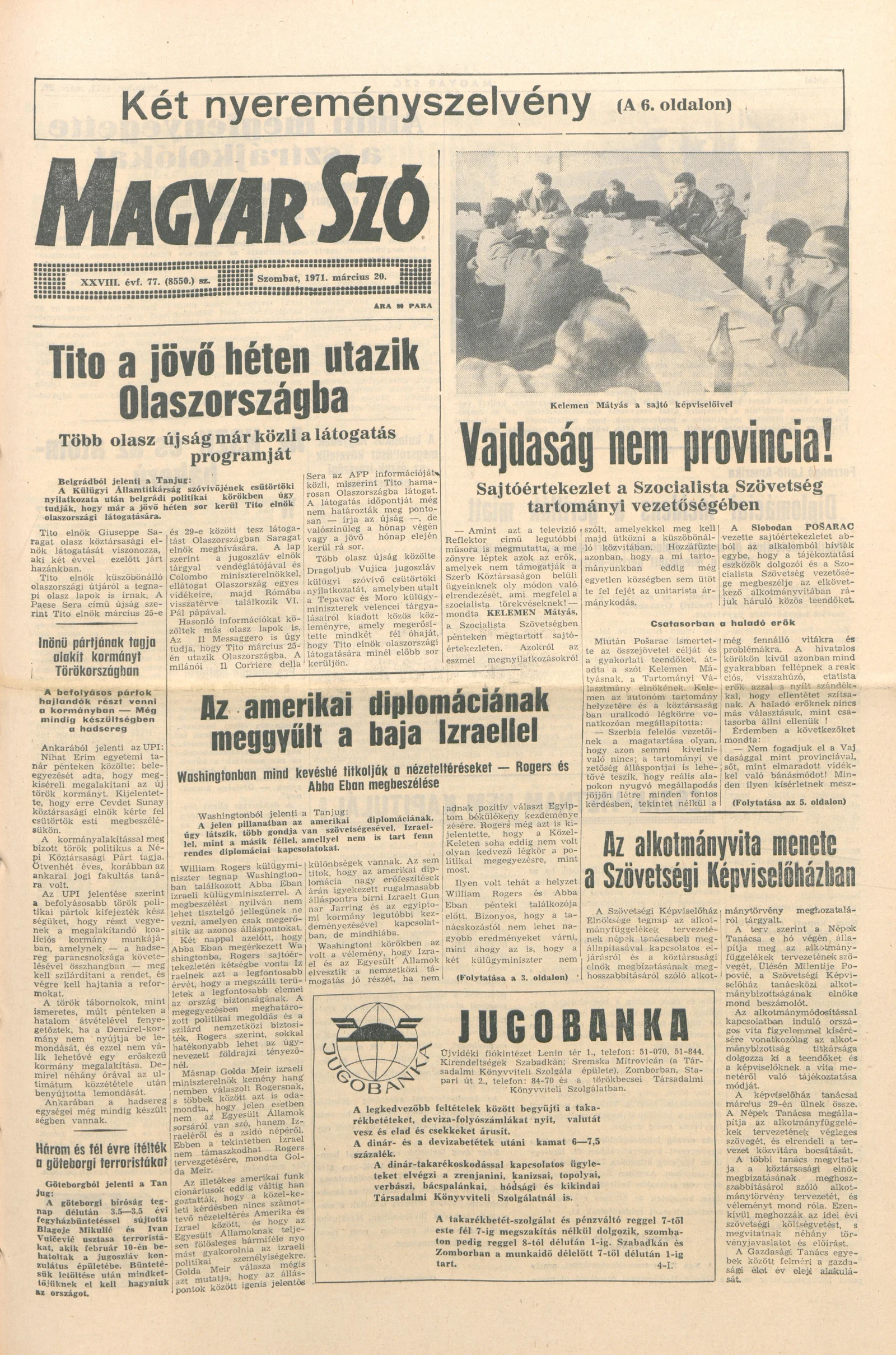 Magyar Szó, 28. évf. 1971. március 20. 77. sz. 1–20. oldal