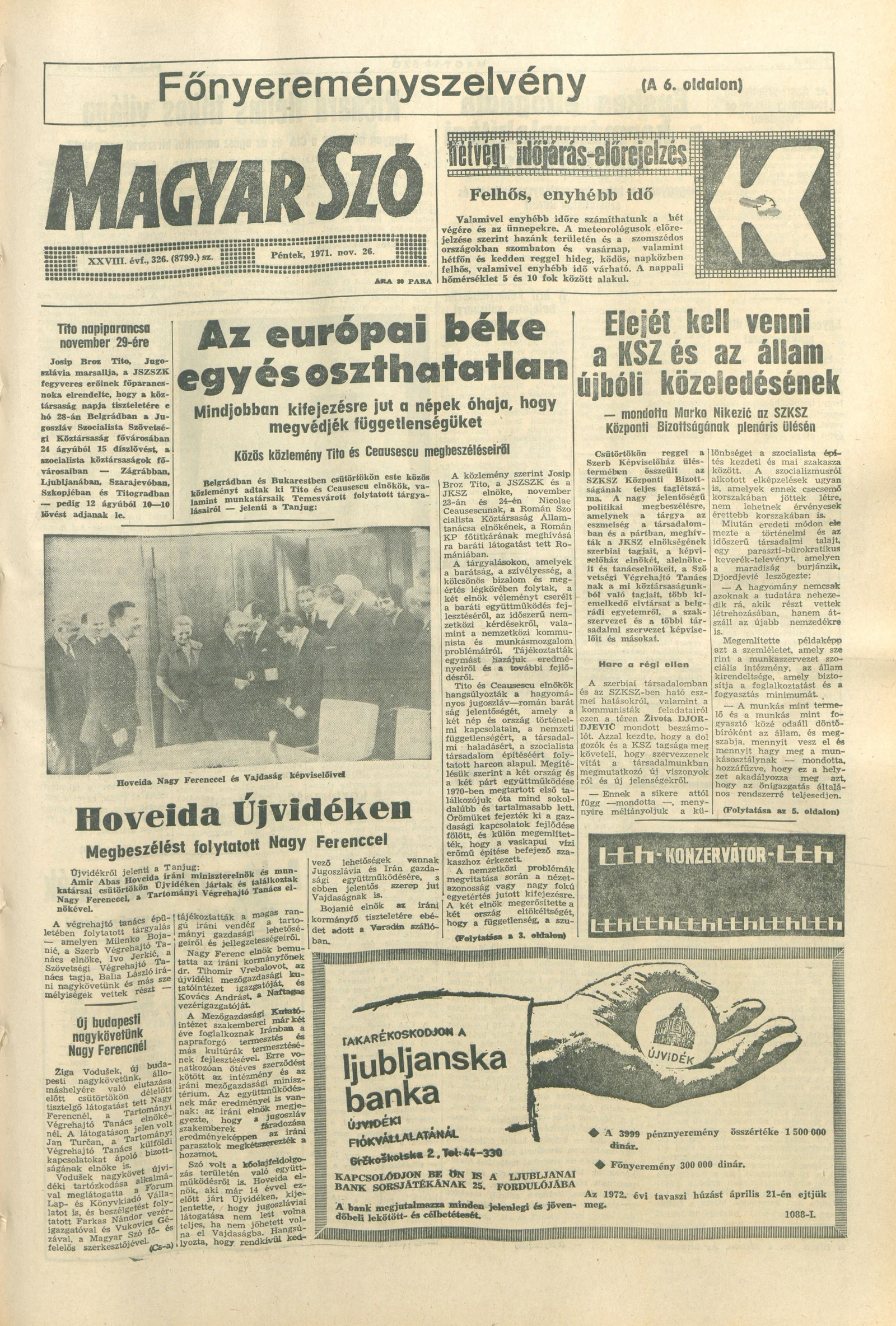 Magyar Szó, 28. évf. 1971. november 26. 326. sz. 1–12. oldal