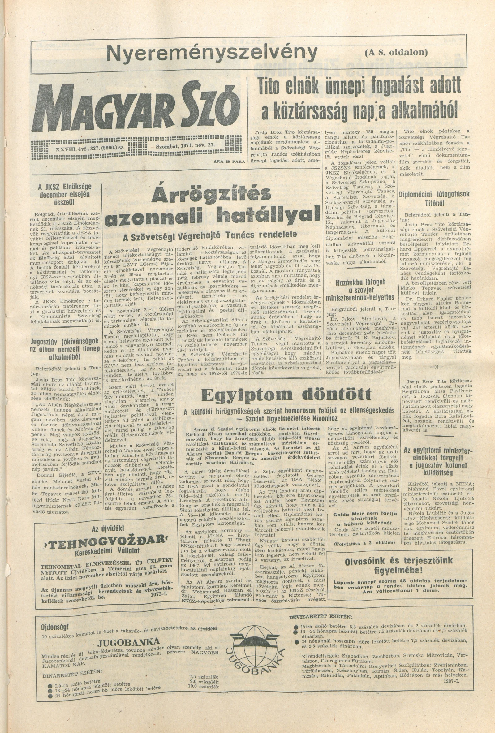 Magyar Szó, 28. évf. 1971. november 27. 327. sz. 1–24. oldal