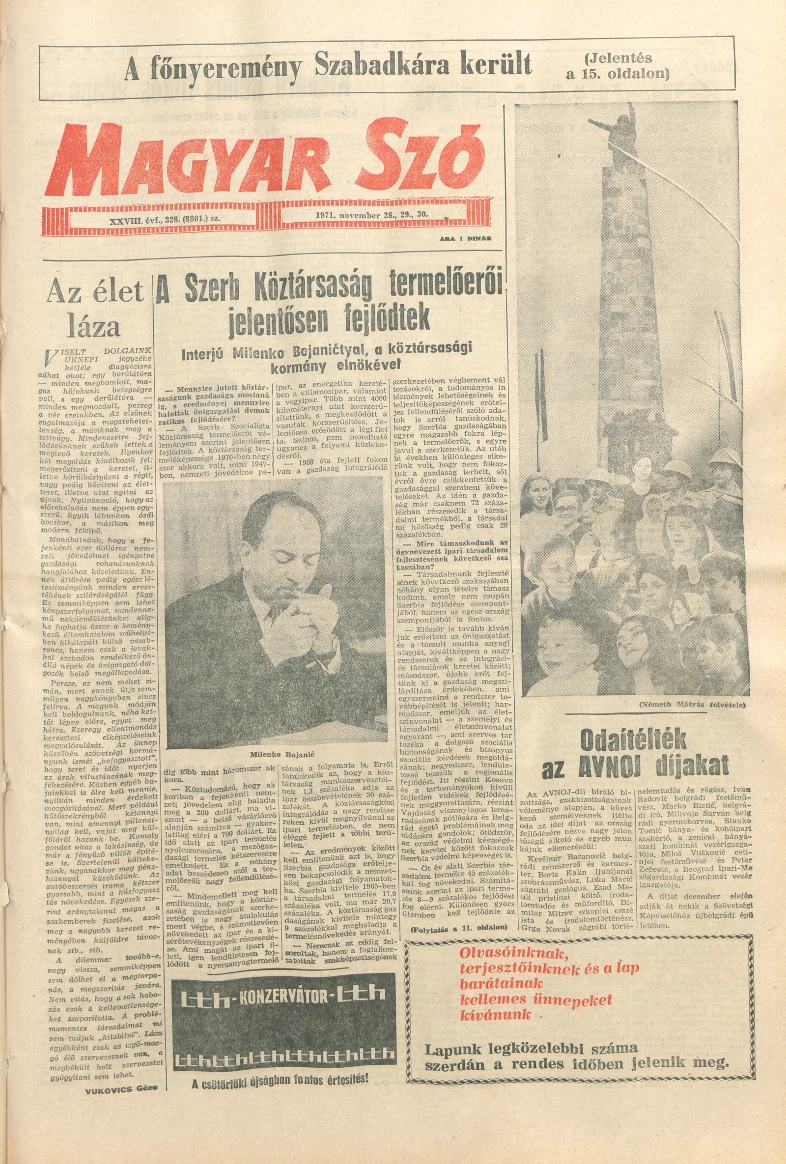 Magyar Szó, 28. évf. 1971. november 28. – 30. 328. sz.