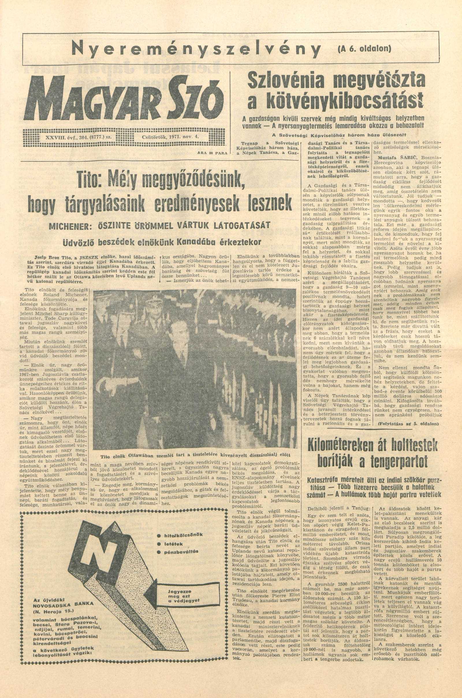 Magyar Szó, 28. évf. 1971. november 4. 304. sz. 1–16. oldal