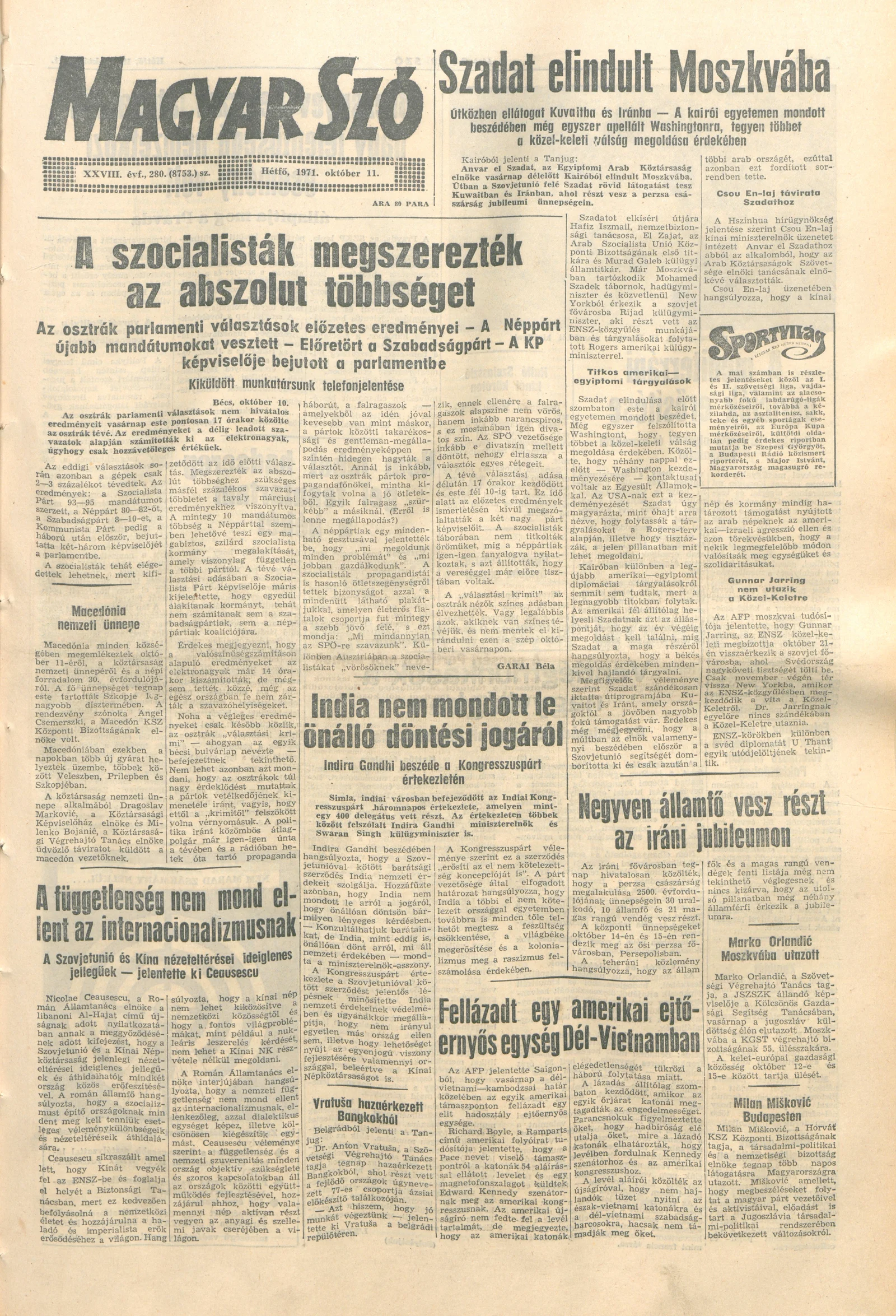 Magyar Szó, 28. évf. 1971. október 11. 280. sz. 1–10. oldal