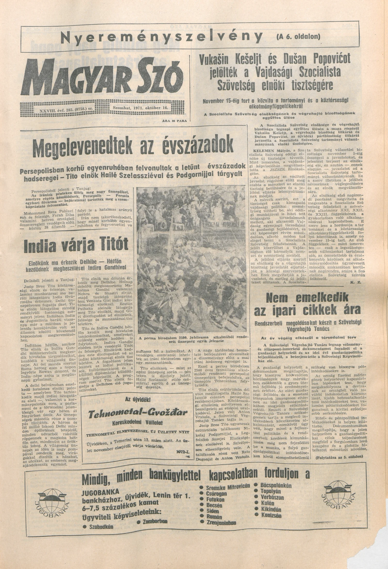 Magyar Szó, 28. évf. 1971. október 16. 285. sz. 1–20. oldal