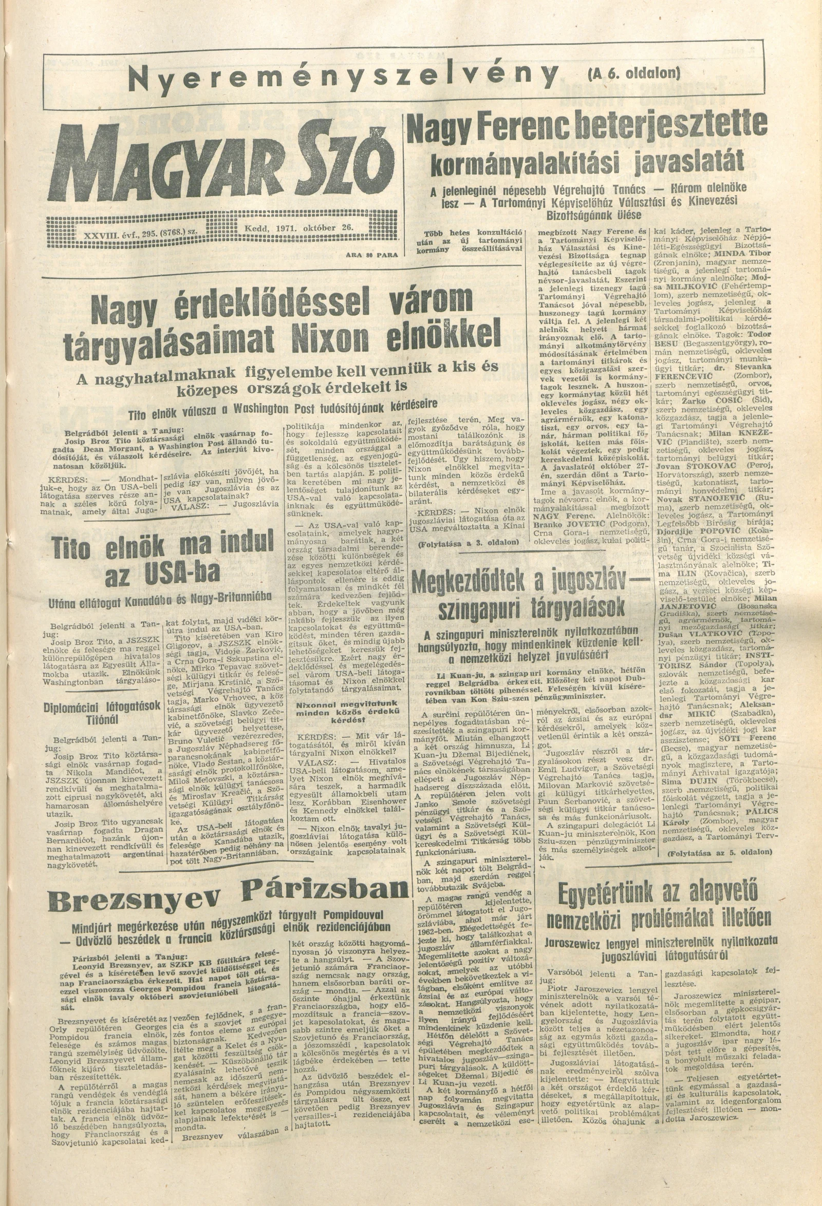 Magyar Szó, 28. évf. 1971. október 26. 295. sz. 1–16. oldal