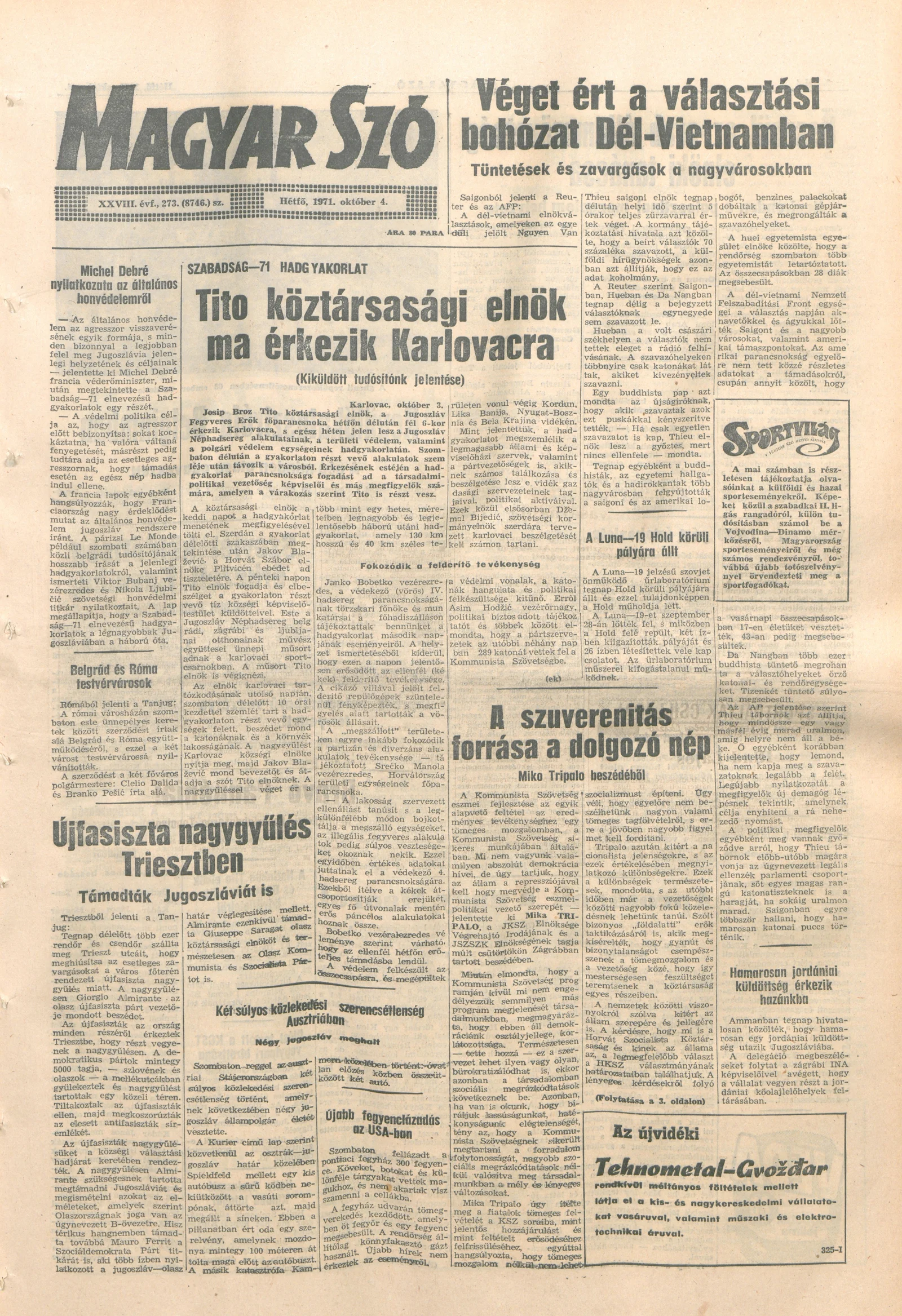 Magyar Szó, 28. évf. 1971. október 4. 273. sz. 1–10. oldal